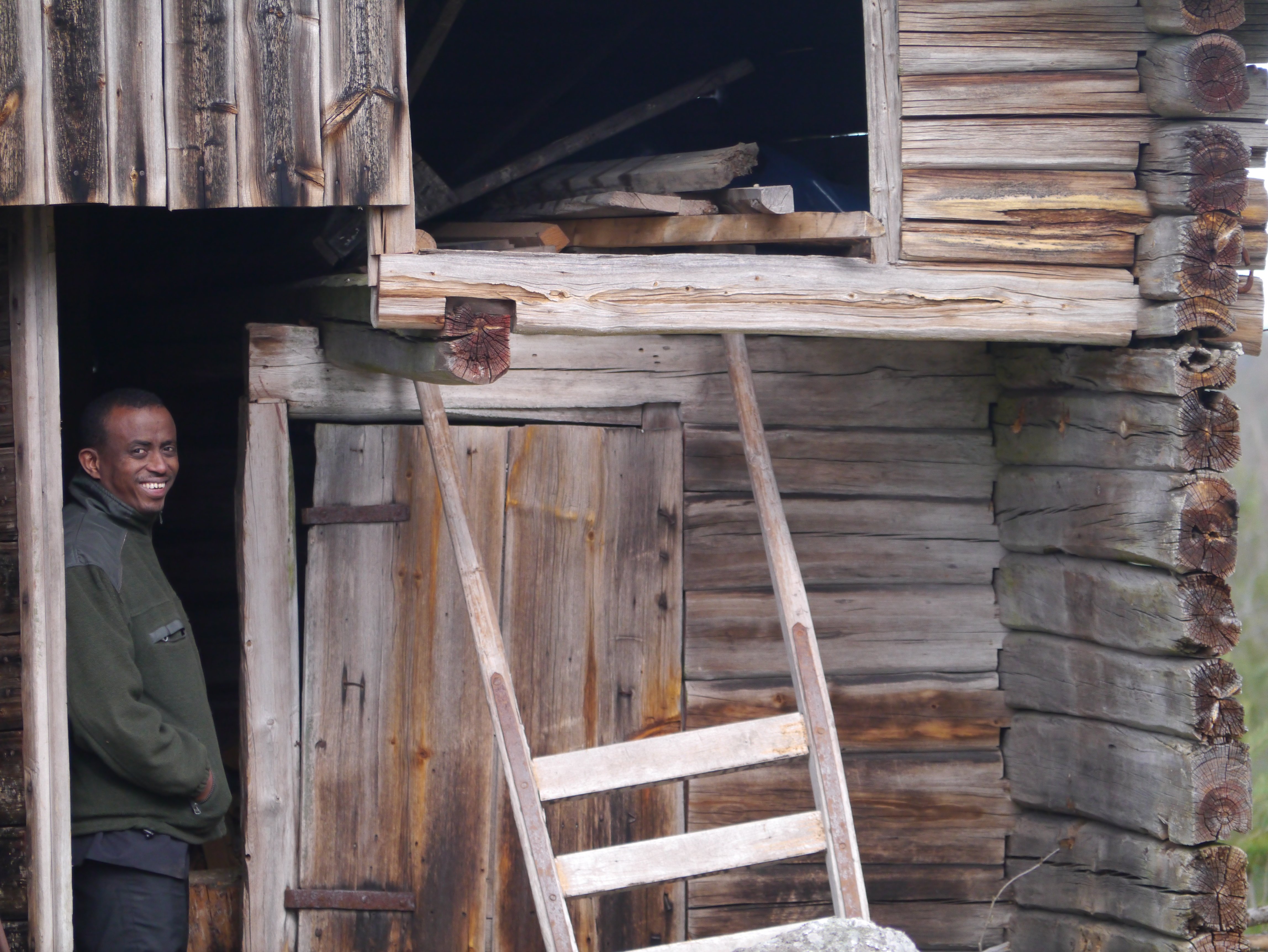 Landstingsrådet och ordföranden i Kultur- och bildningsnämnden Mursal Isa deltar i en kulturhistorisk utflykt och studerar byggnader och redskap som användes i arbetet på fäboden.