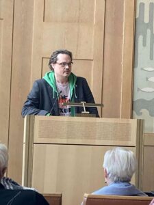 Markus Jörngren, gruppledare för Miljöpartiet, vid första anförandet för dagen.