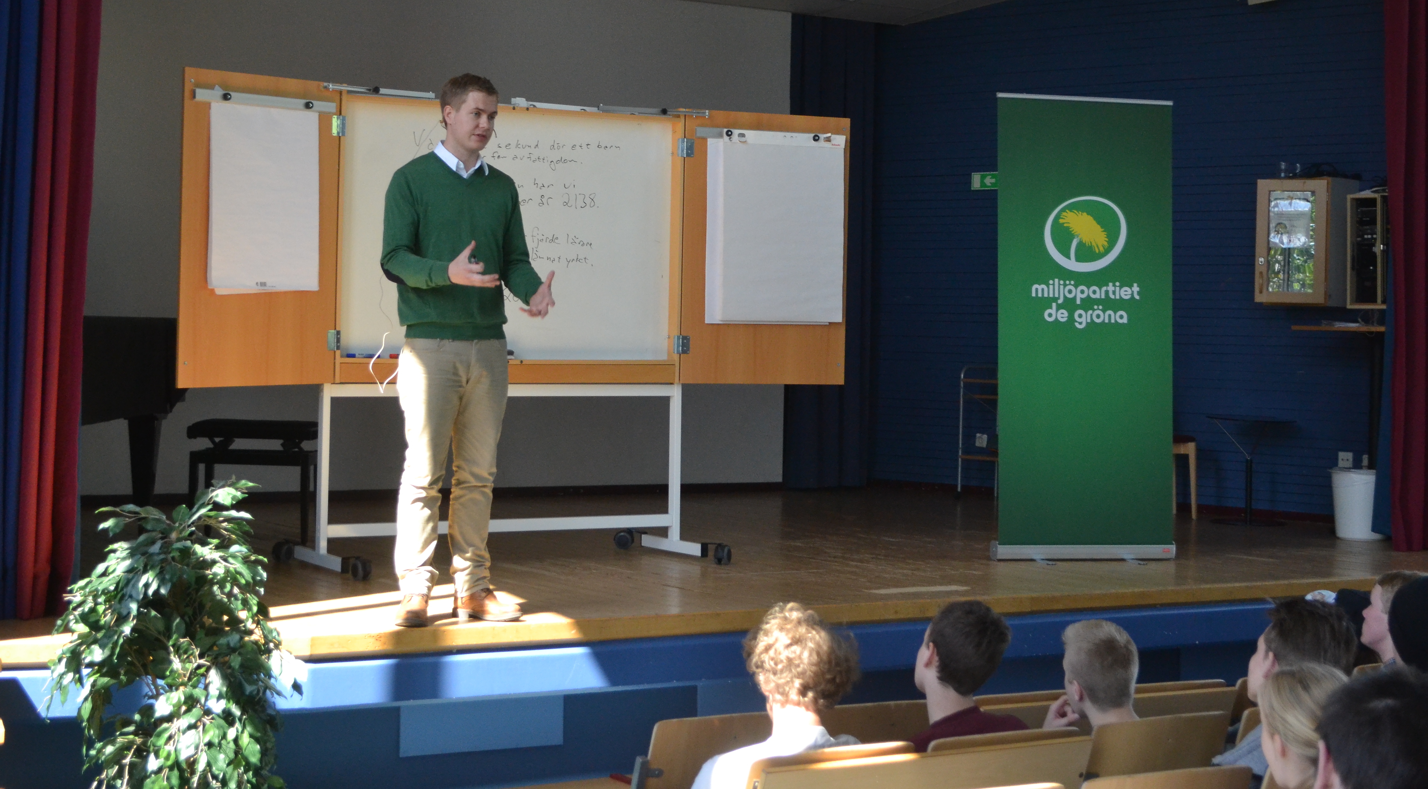 Elever från både Tångaskolan, Falkenbergs gymnasieskola och Drottning Blankas gymnasieskola kom för att träffa Gustav Fridolin som pratade om grön politik och engagemang.