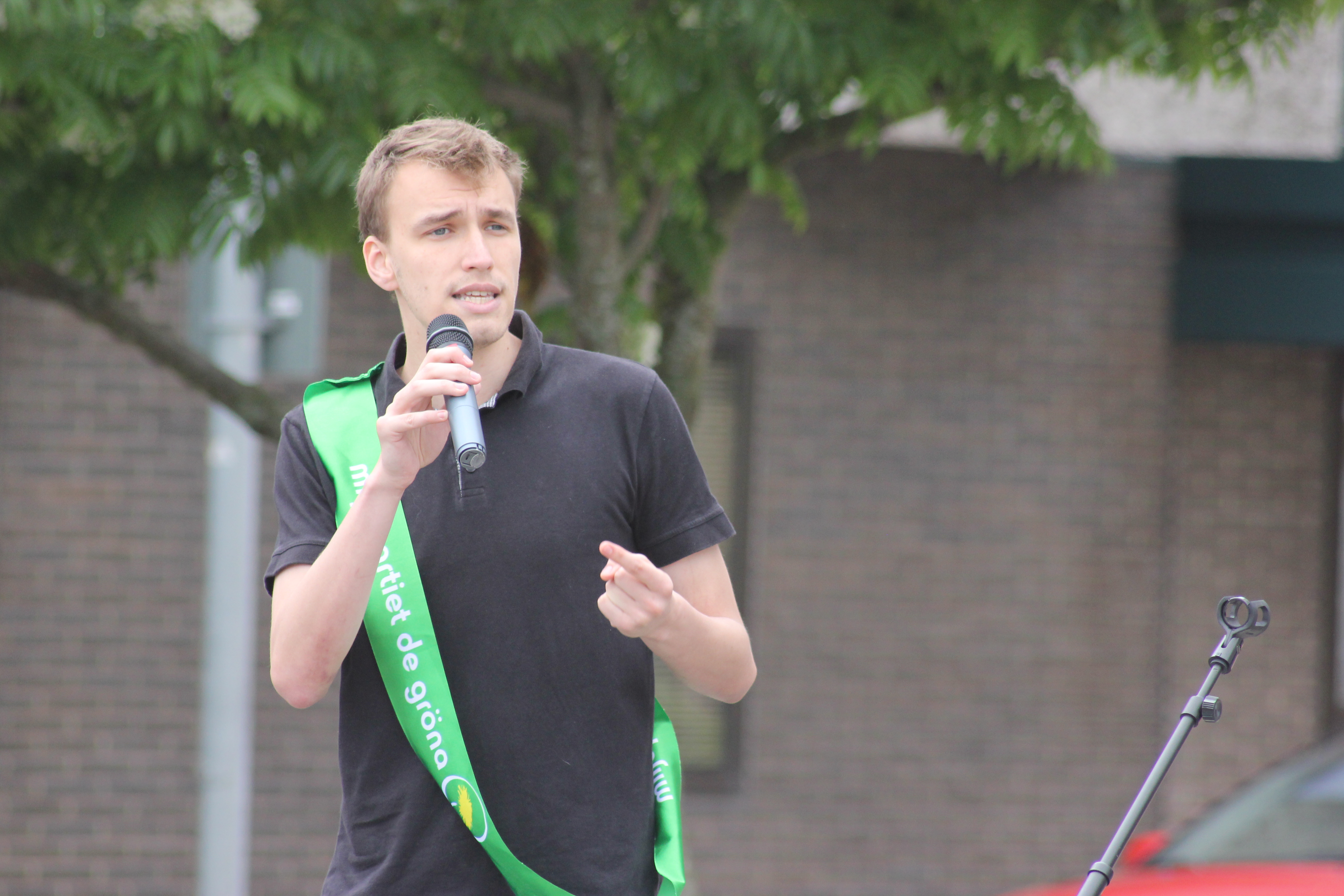 I dag var sista lördagen partierna samlades på Rörbeckstorget inför EU-valet. Miljöpartiets talare var Rikard Allvin.