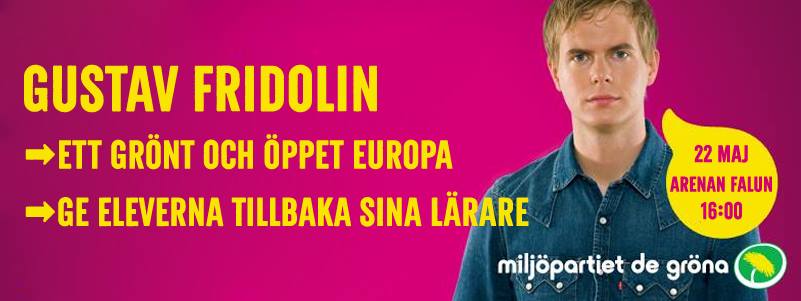 Miljöpartiets sprÄkrör Gustav Fridolin kommer och inspirerar oss inför EU-valet och ger oss hopp om skolpolitiken. Passa pÄ att trÀffa och frÄga ut!