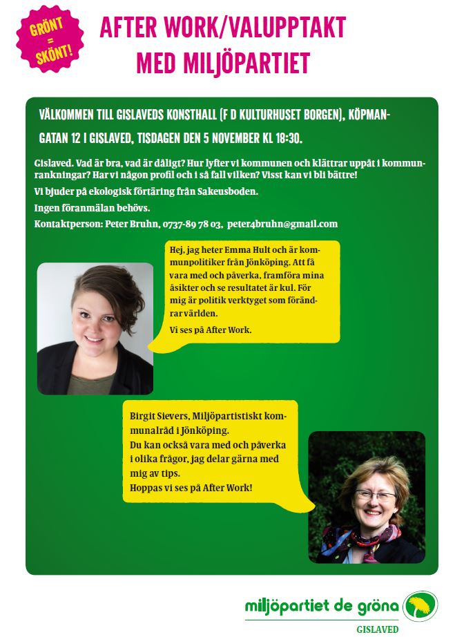 Inbjudna talare är Emma Hult och Margit Sievers från MP i Jönköping
