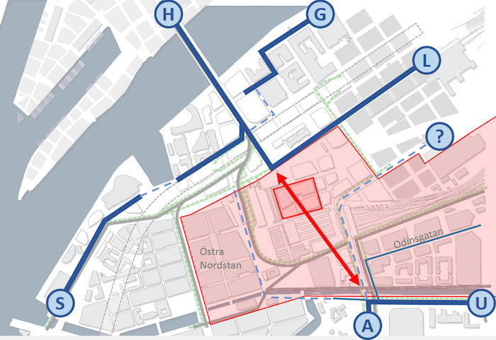 Miljöpartiet föreslår att det byggs en effektiv tvärförbindelse för cykel genom Centralenområdet från Polhemsplatsen/nya Allén till nya Hisingsbron.