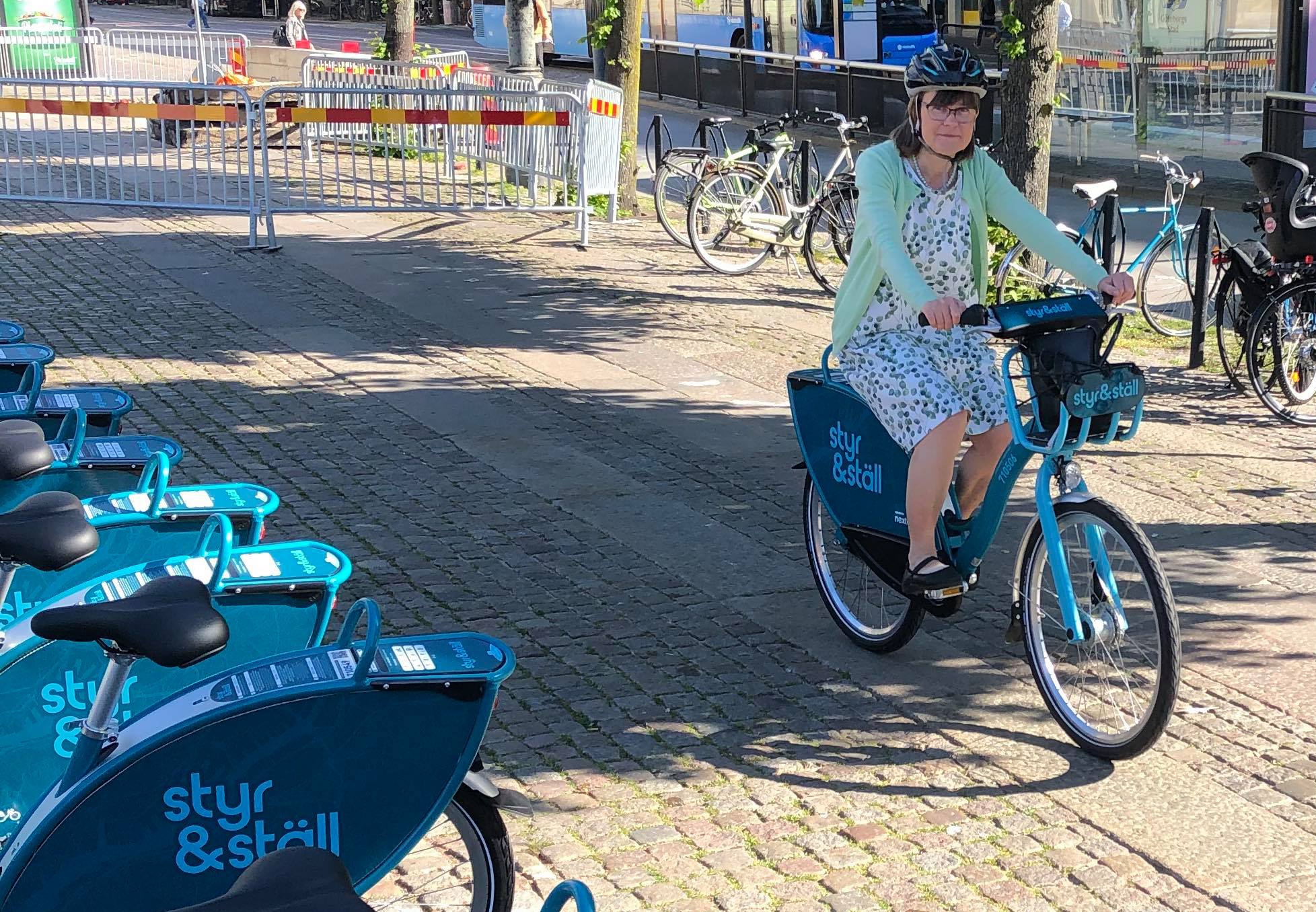 – Staden har precis fått alldeles nya fina hyrcyklar. Tänk om många fler får upp ögonen för dem och börjar cykla. Det skulle vara bra även på längre sikt, både för den egna hälsan och för luften i Göteborg. I bästa fall skapas goda vanor som finns kvar även när coronapandemin ebbat ut. Det säger Karin Pleijel (MP).