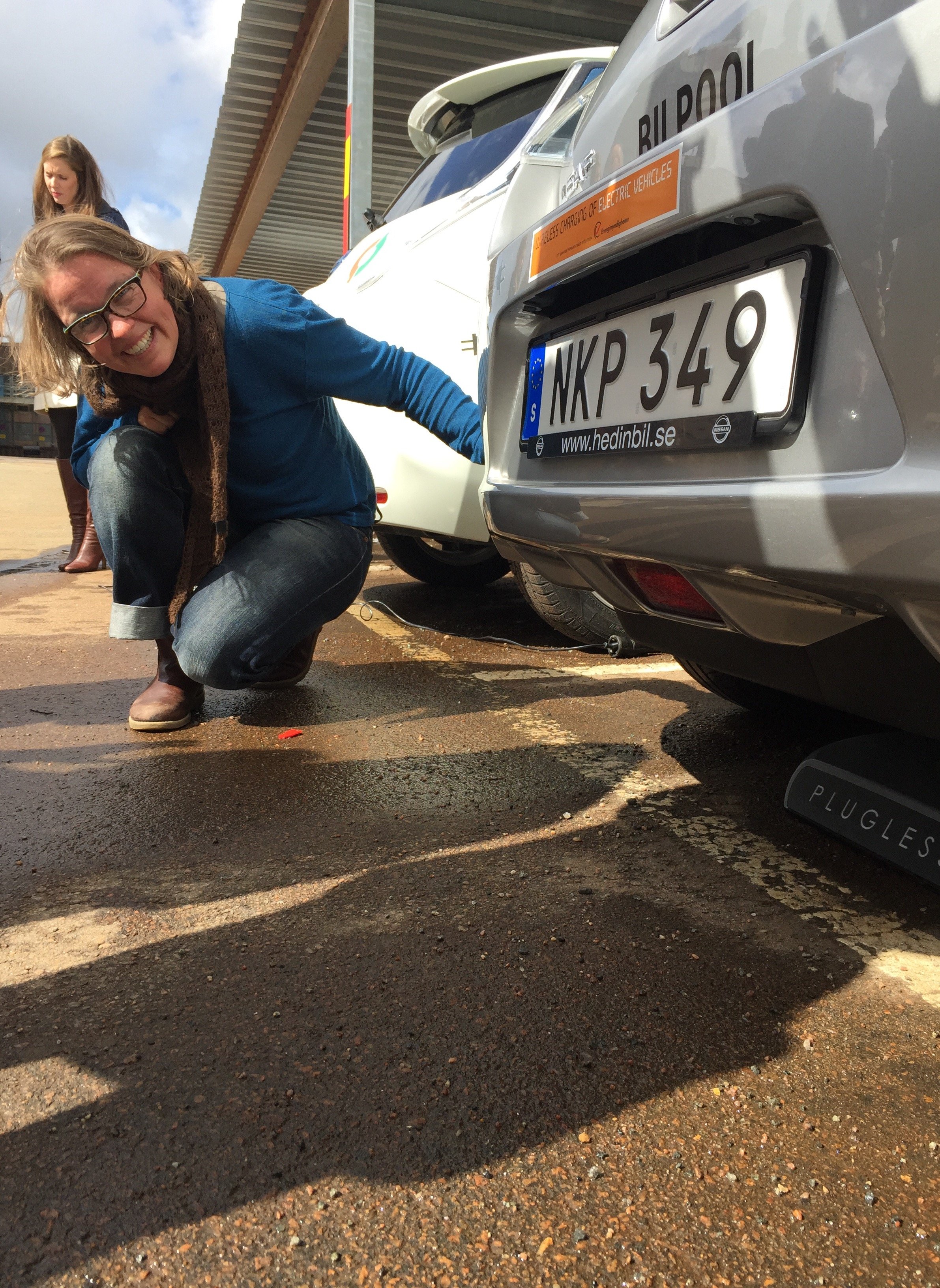 Den smarta tekniken visades upp för många intresserade. Elbilen ska enkelt kunna stanna till på en laddplatta som startar automatiskt och betalningen kan även den göras automatiskt.