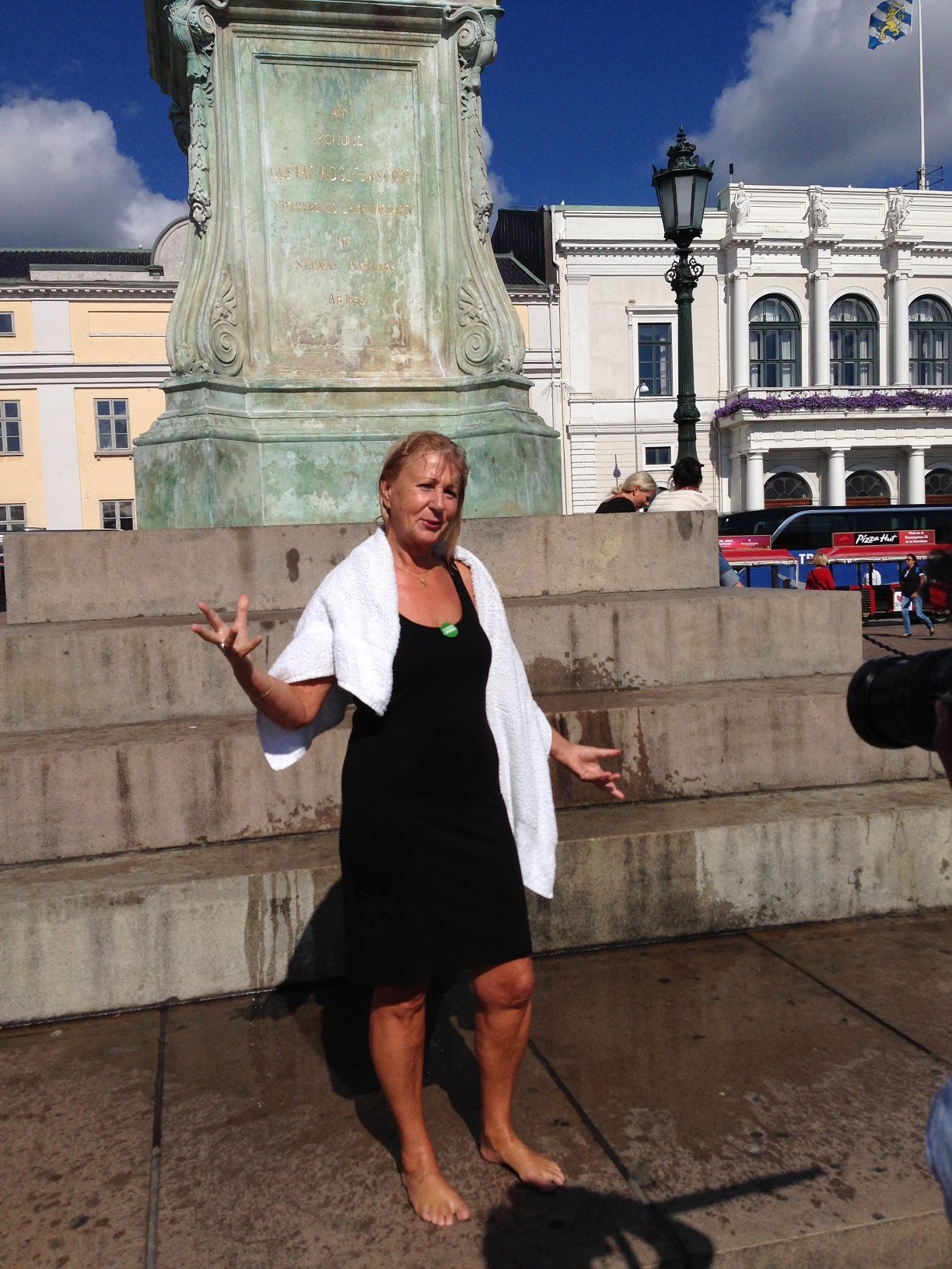 Hon sade också att det är klimatet som behöver kylas ner och inte hon. Därför vädjar hon till göteborgarna att rösta ja till trängselskatt och uppmanar tveksamma att se filmen Framtidsrösten.se på nätet om hur Göteborg ska se ut i framtiden.