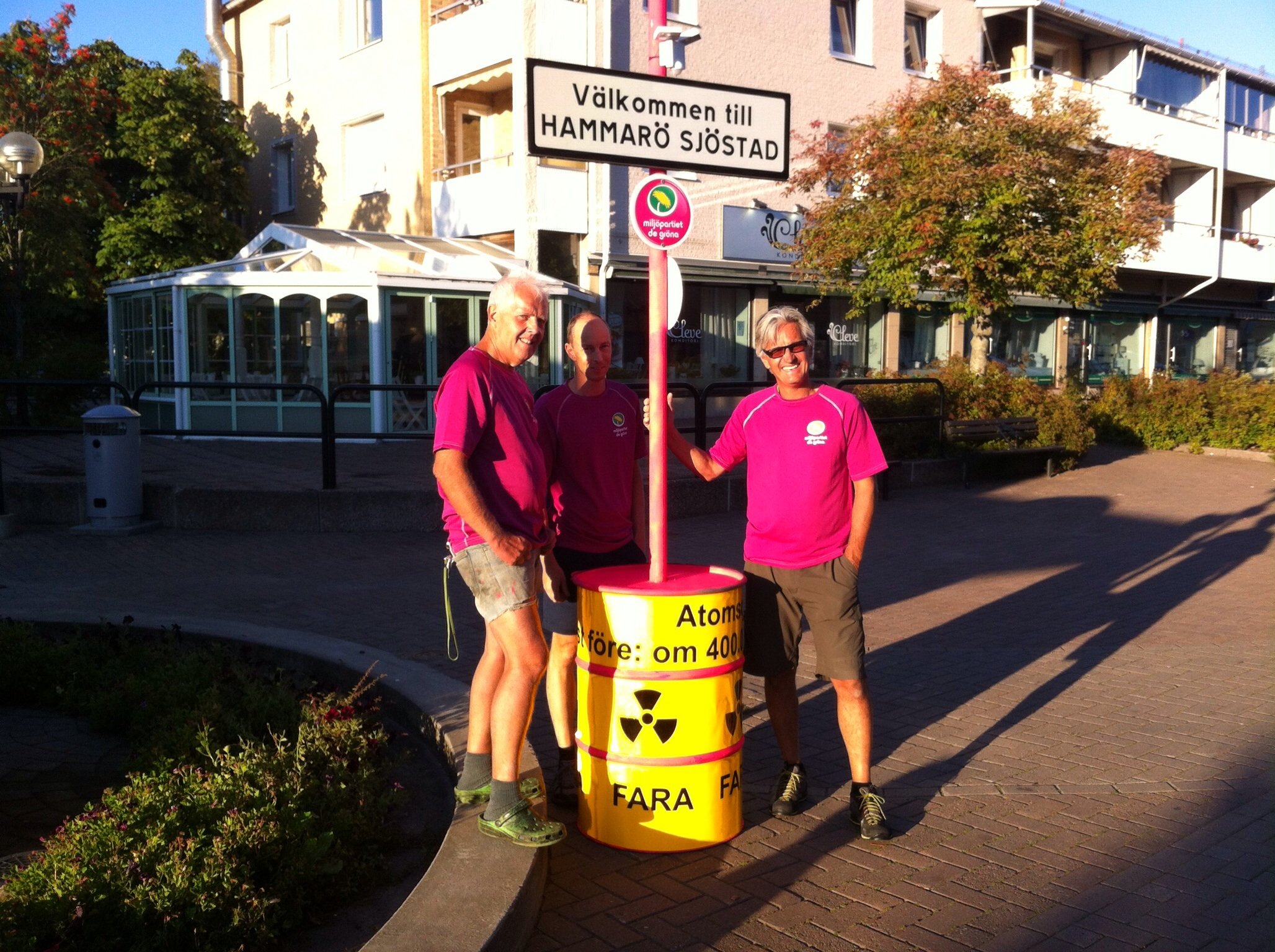 Kärnavfallstunnan symboliserar att vi idag inte har någon lösning på kärnavfallet som tar cirka 100 000 år att brytas ned. Vi tror inte att Hammaröborna vill ha kärnavfallet i närheten heller. Istället bör vi satsa på förnyelsebara energikällor som sol, vind och vatten. Vi har därför satt ett vindkraftverk på avfallstunnan. Detta minivindkraftverk laddar ett batteri som driver LED-lampor på stolpen.