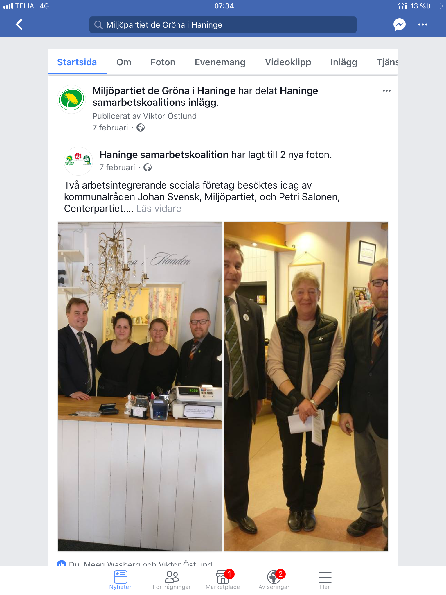 Därför besökte vårt gröna kommunalråd idag två Arbetsintegrerande Sociala företag i centrala Haninge. Här är texten från dagens Facebookinlägg: