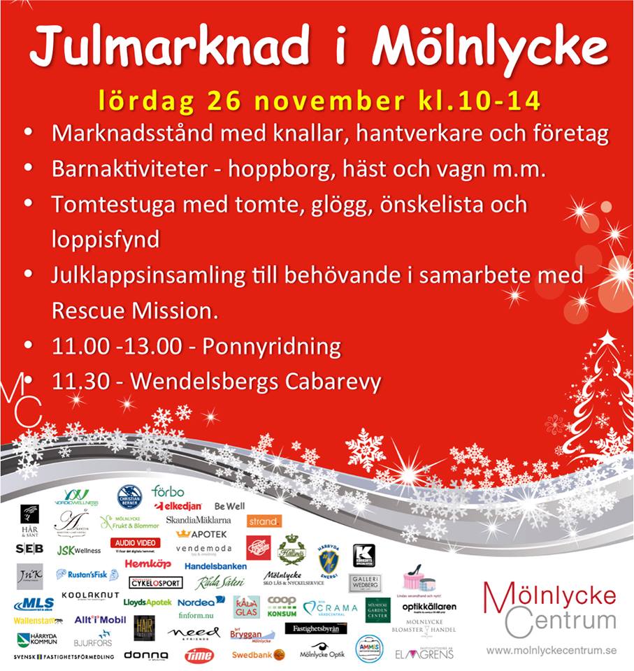 I vanlig ordning så kommer vi medverka på julmarknaden i Mölnlycke nu på lördag (26 november) Vill du vara med och stå i tältet så är du välkommen från från klockan 10. Naturligsvis kan du hänga en stund eller stå hela tiden. Klä dig värm! Mer information finns i vår facebookgrupp. Vi ses!
