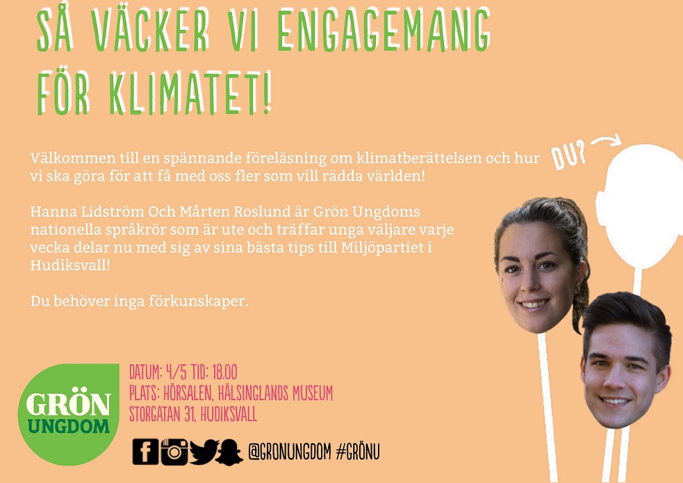 Välkommen till en spännande föreläsning med Grön ungdoms nationella språkrör Hanna Lidström och Mårten Roslund.