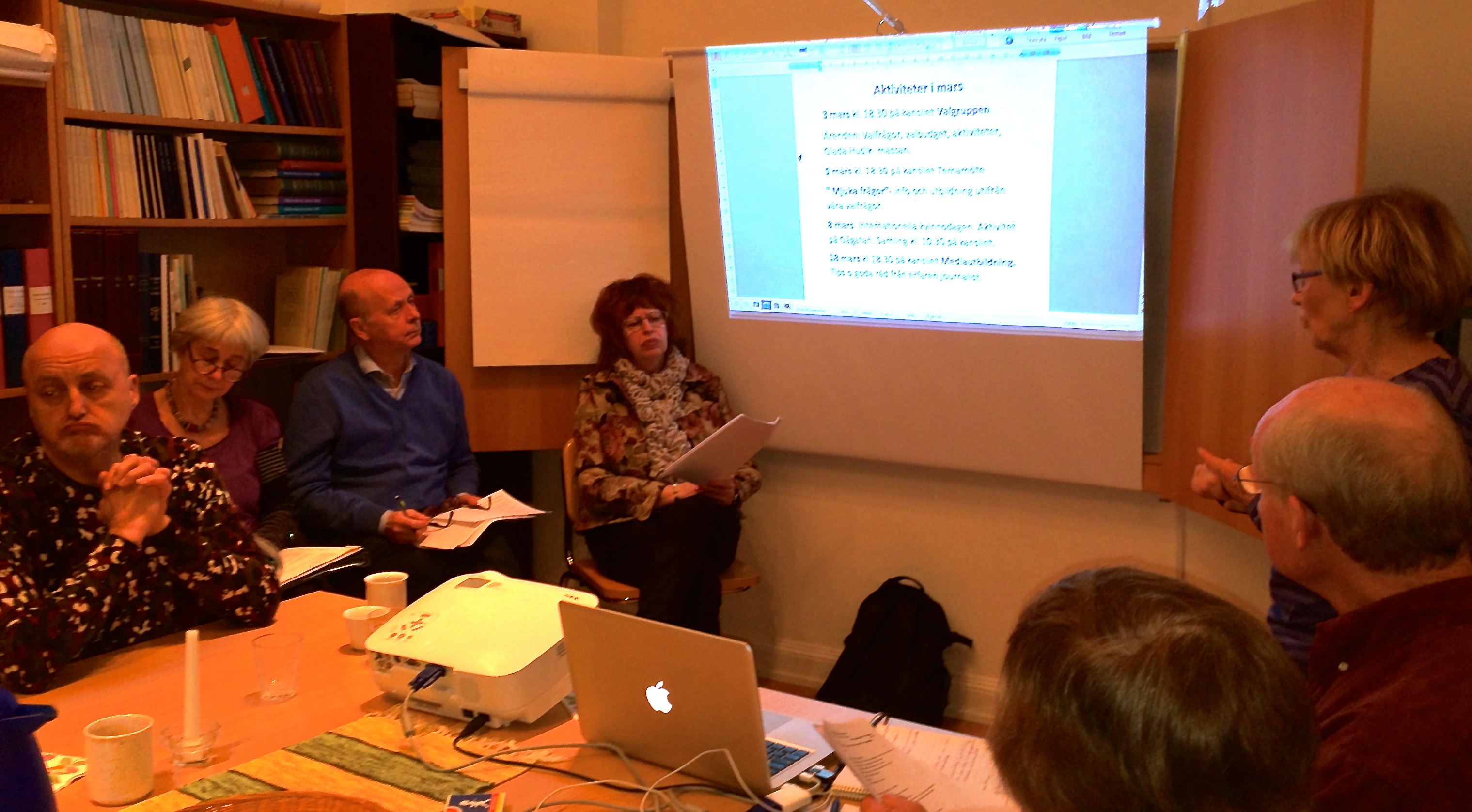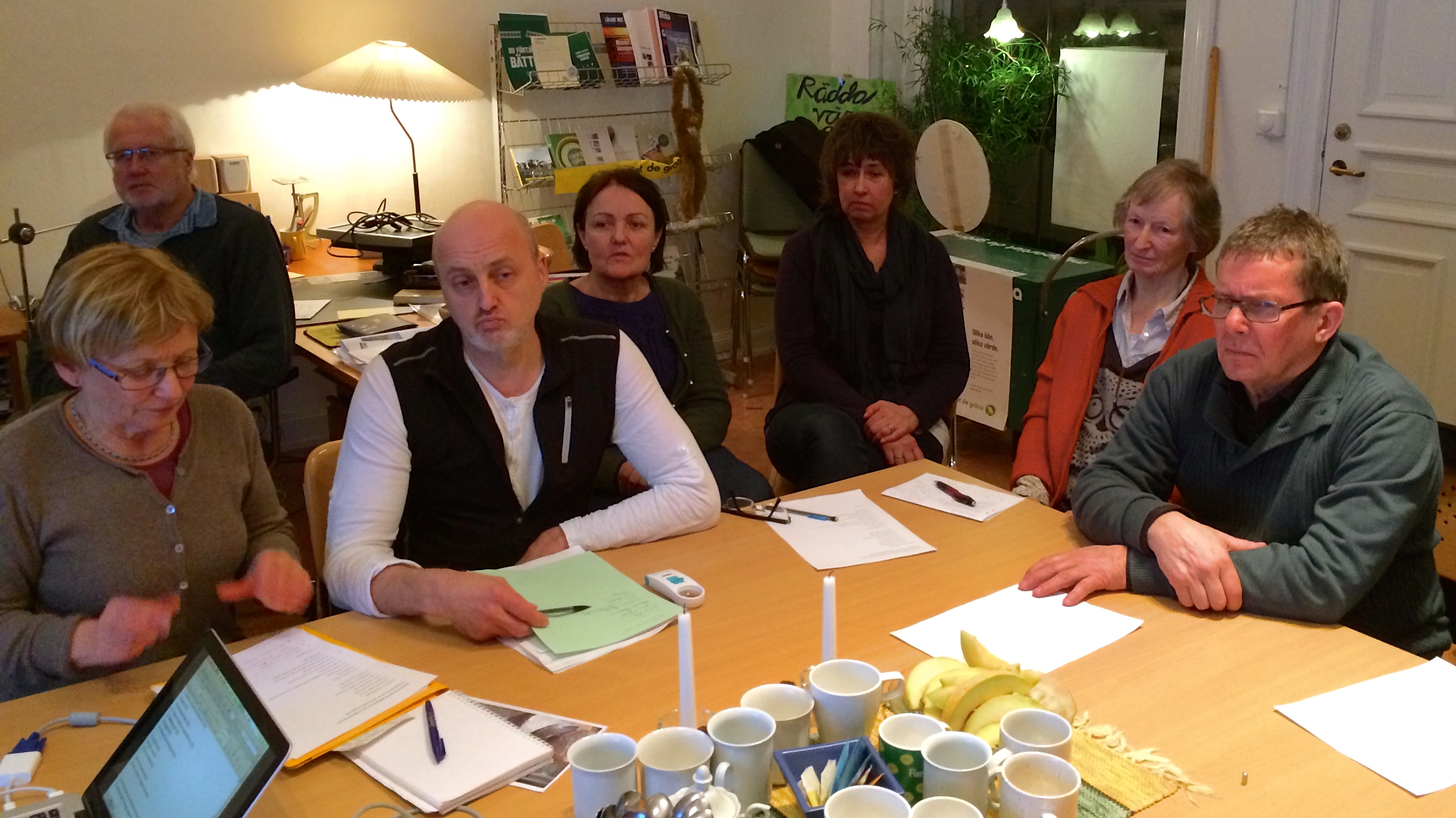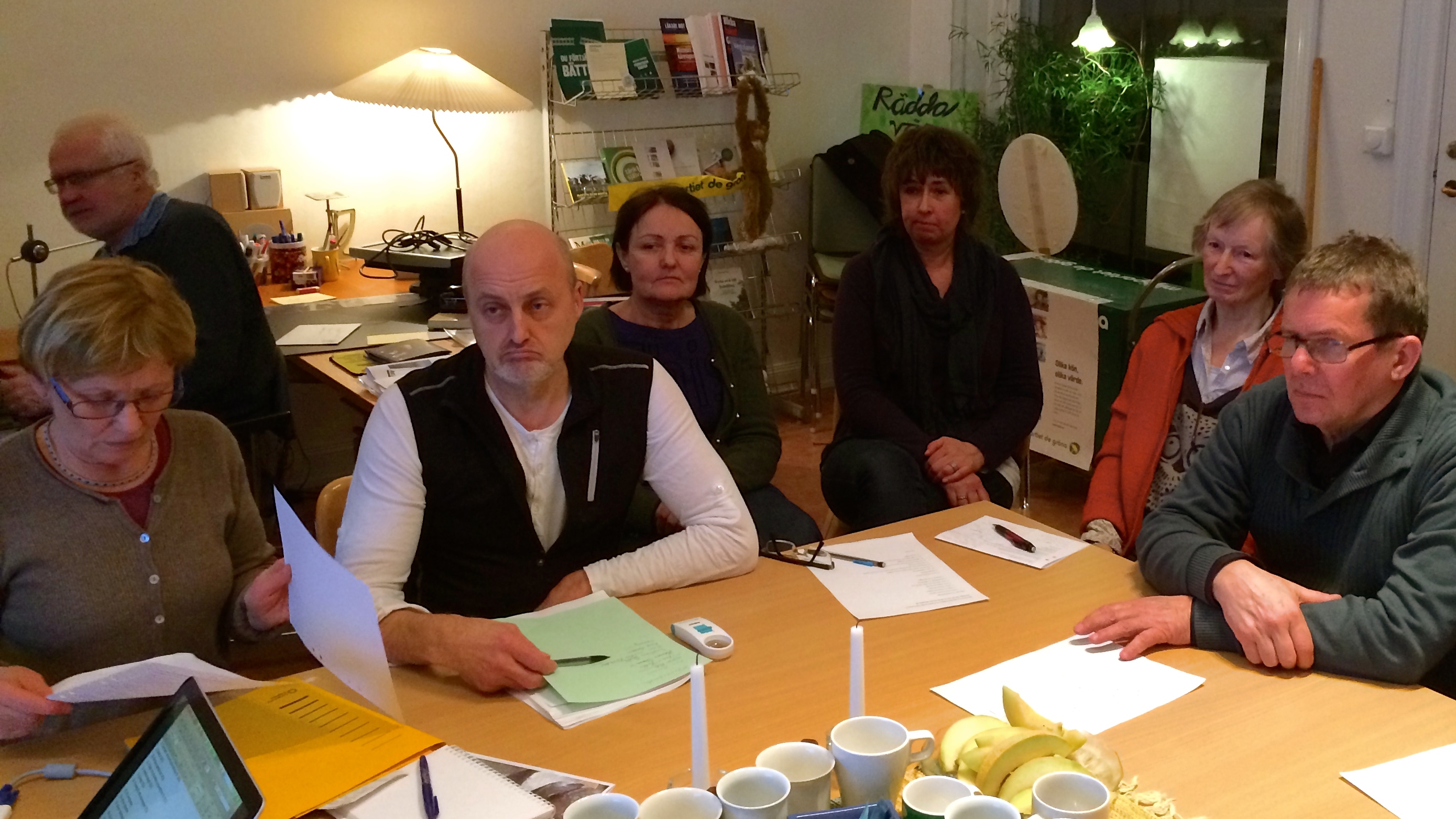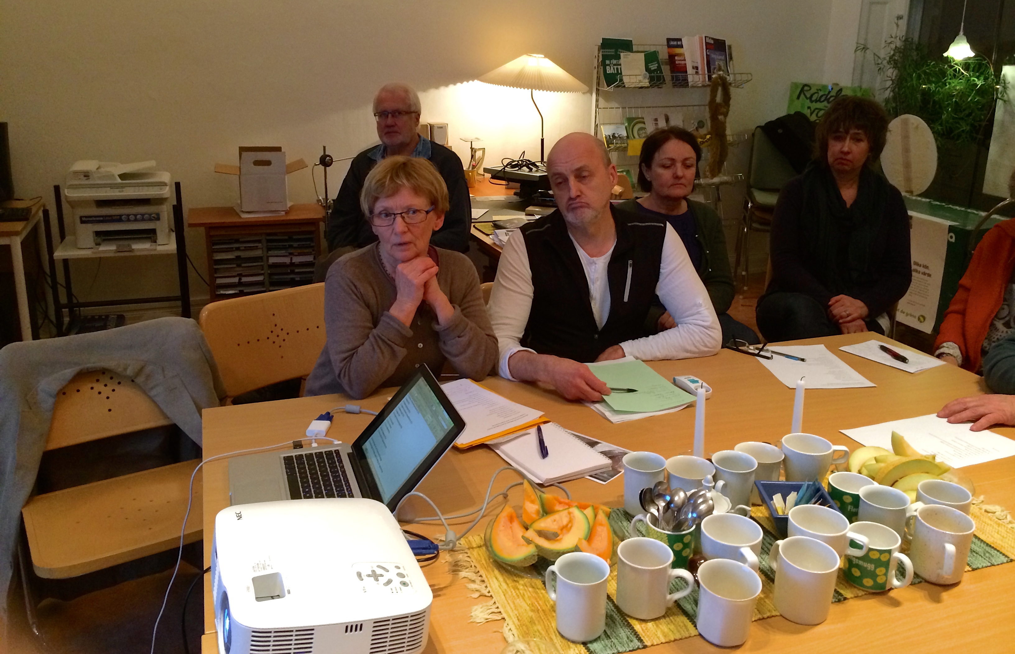 Del 2 av Årsmötet 20 mars på kansliet. 15 närvarade gröna och en beige.