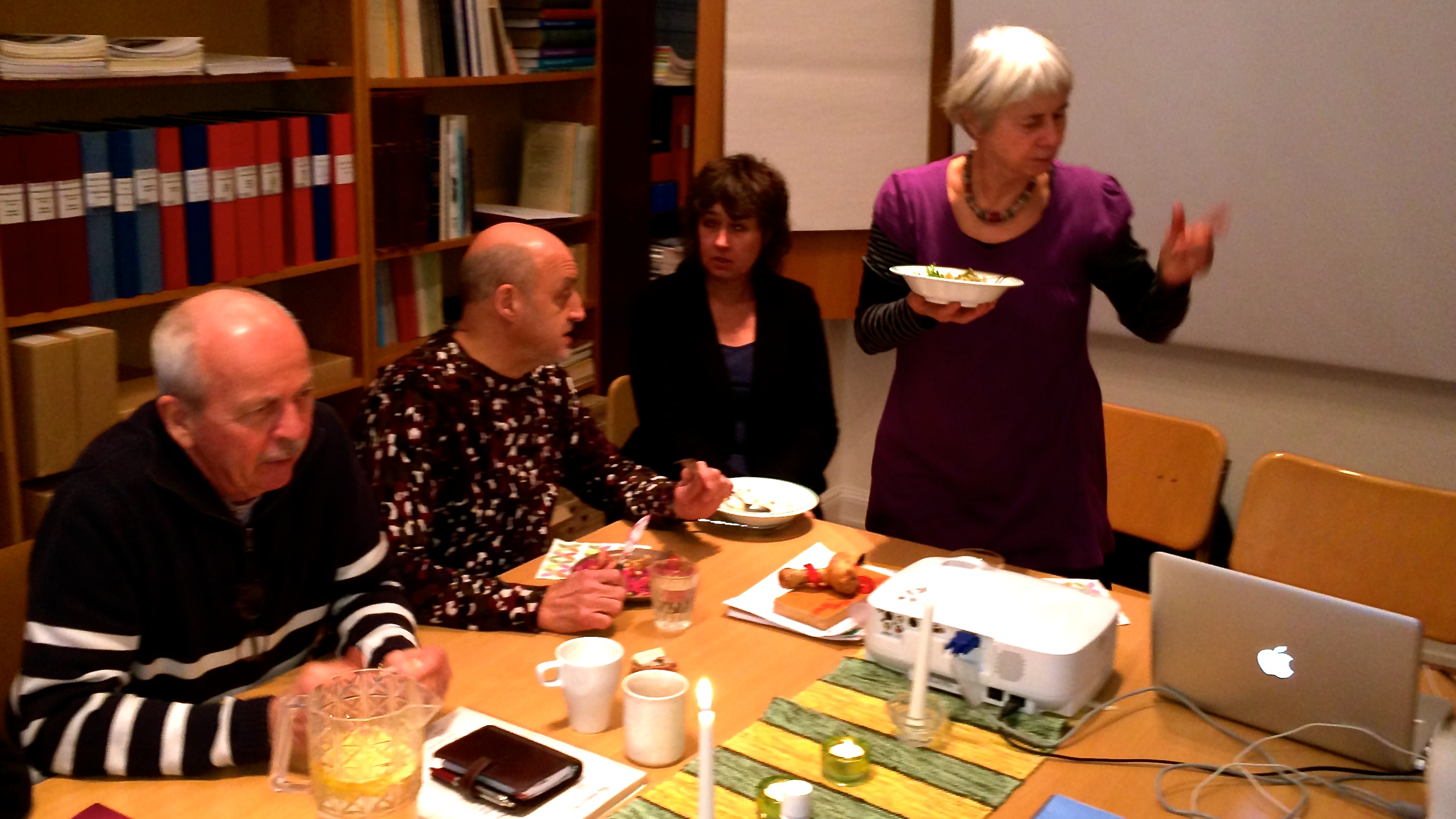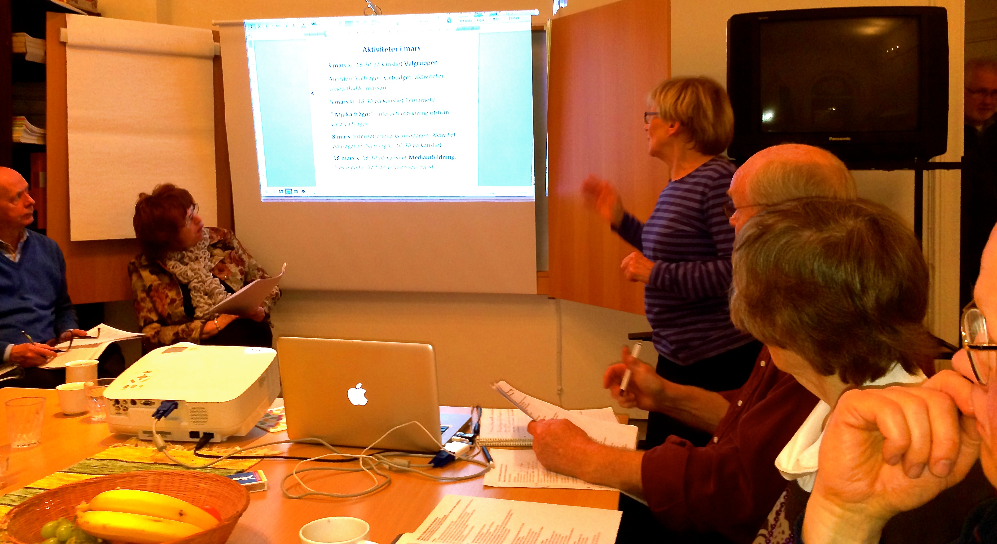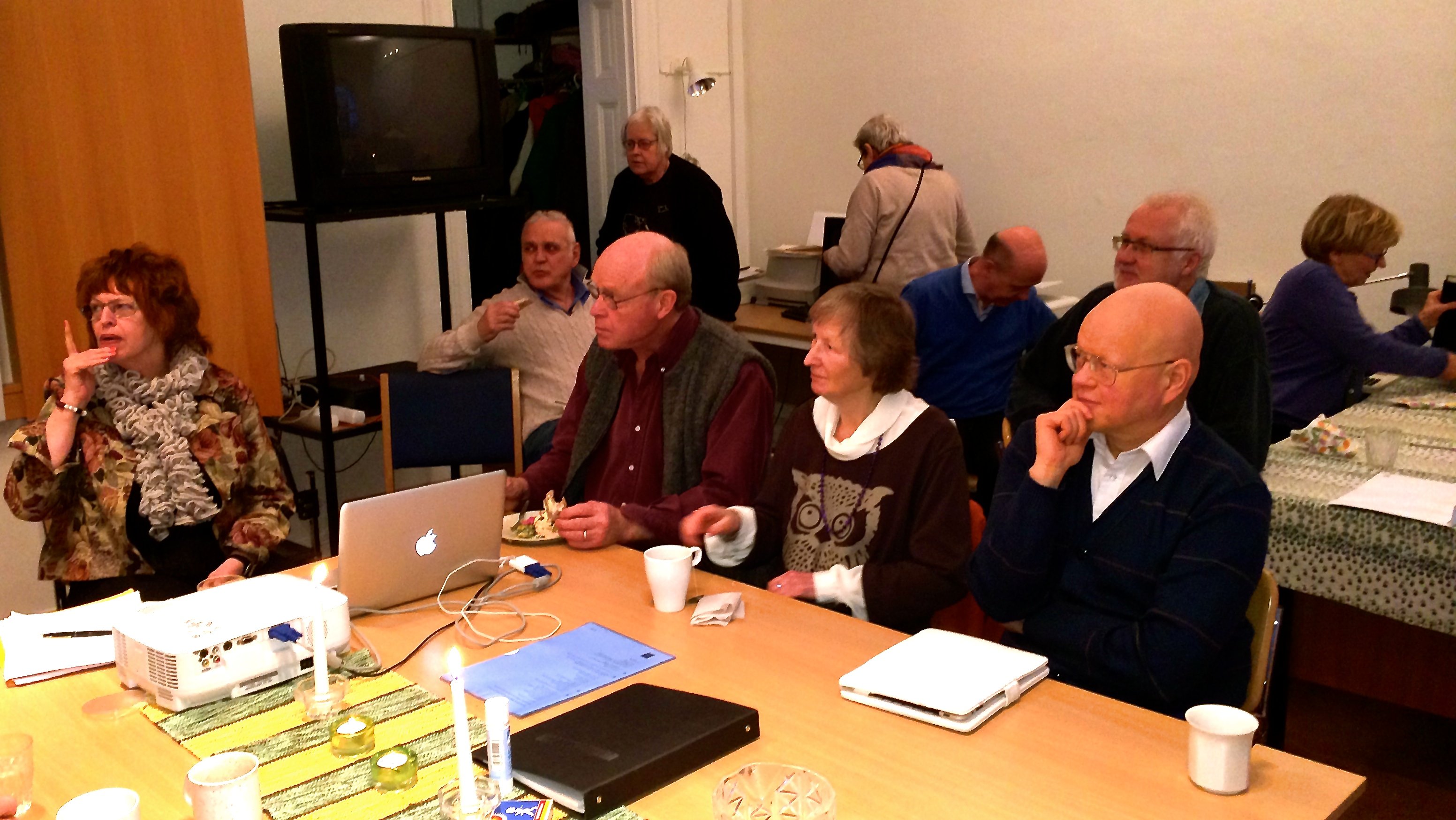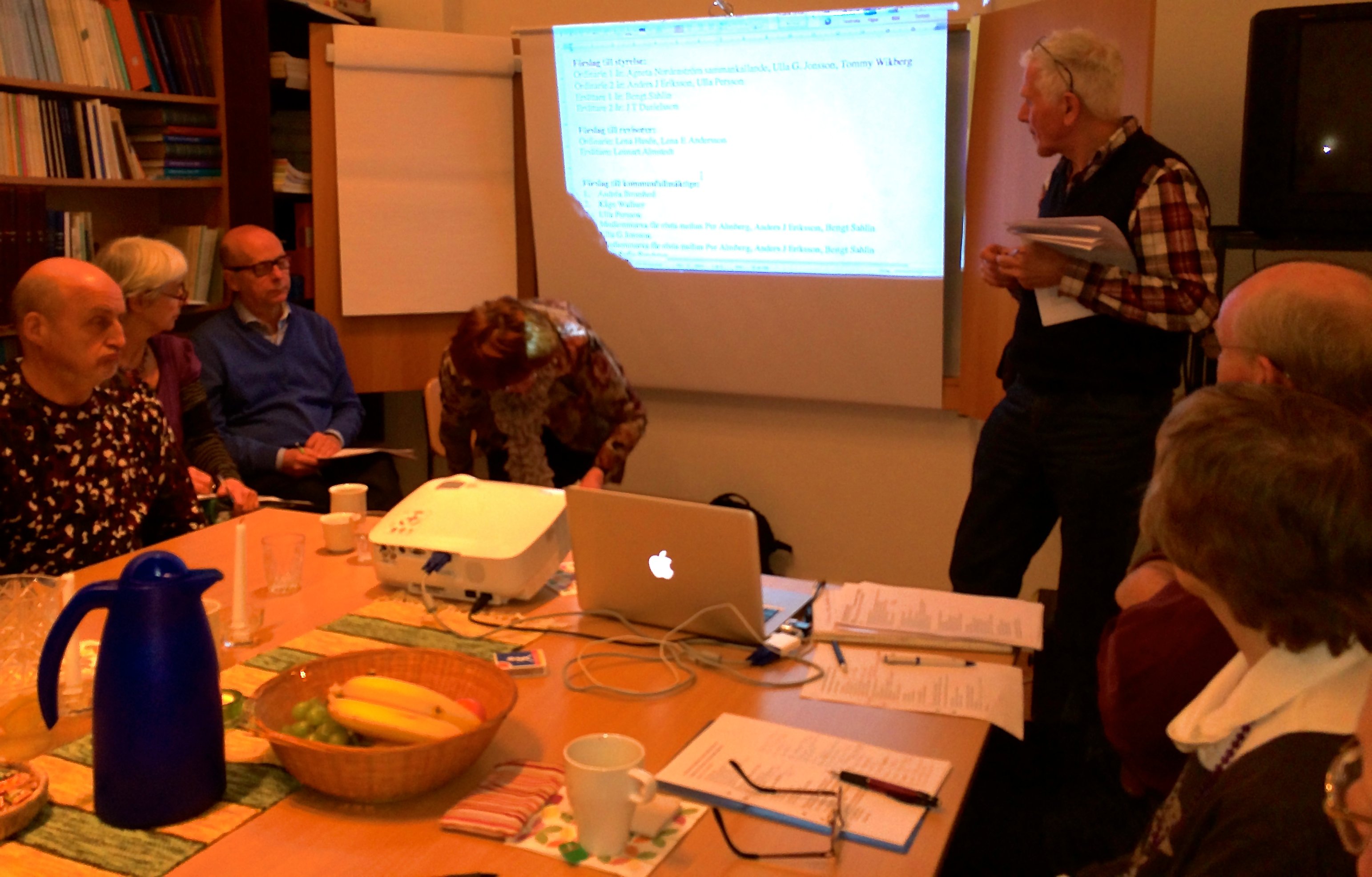 Del 2 av Årsmötet 20 mars på kansliet. 15 närvarade gröna och en beige.
