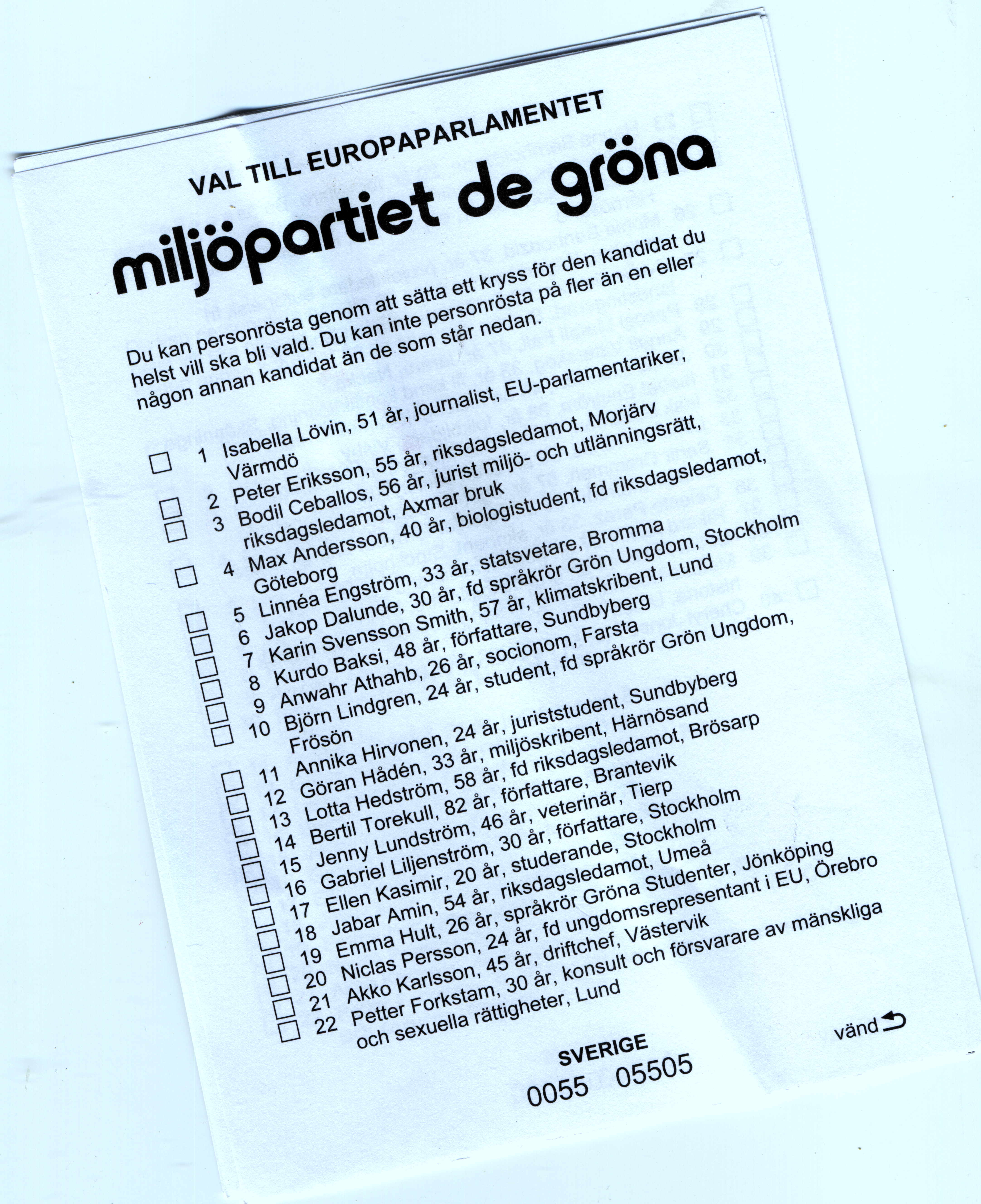 Det vimlar av namn på duktiga och ambitiösa, gröna människor på listan, men här visas bara första sidan, då vi får vara glada för 3-4 platser i parlamentet.