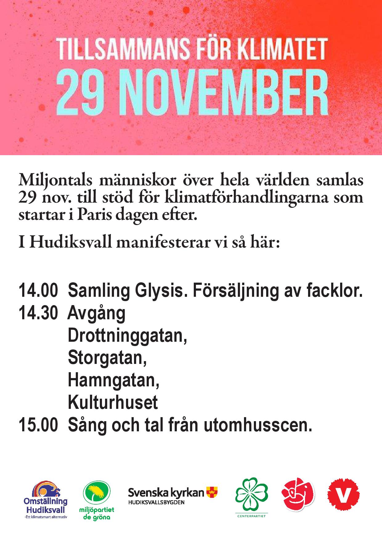 Den 29 November, dagen innan det stora klimatmötet i Paris kommer en global manifestation att anordnas även i Hudiksvall.