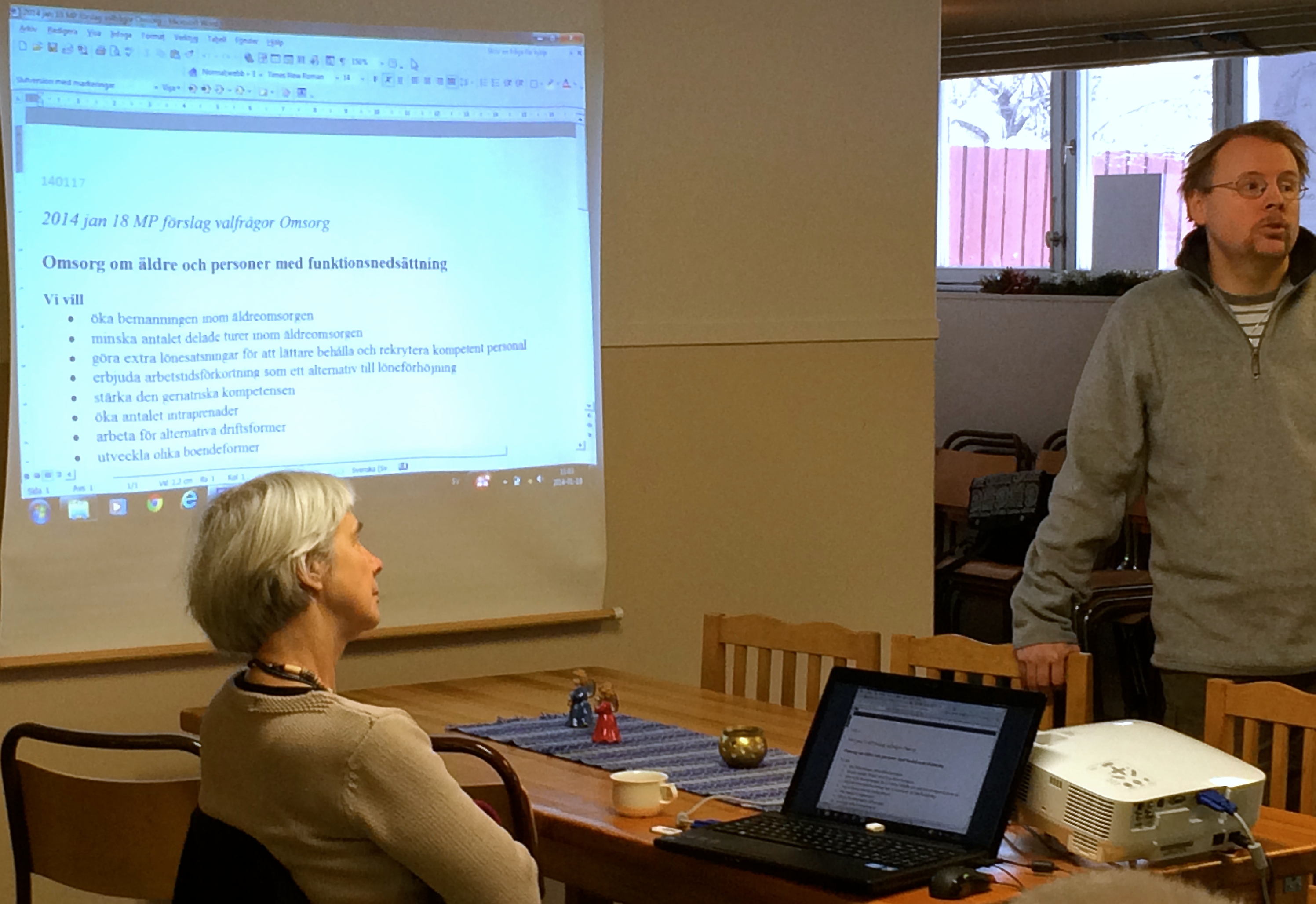 Söndagen 19 januari träffades sexton miljöpartister för att lägga upp planerna för valåret. Vi har en fast valgrupp som planerade denna valupptakt och som även fått in synpunkter från medlemmar som inte kunde vara med. Redan klockan 10 söndagsförmiddagen satte vi igång och allt väsentligt hanns med tack vare Ulla Persson som lyckades hålla oss till ämnet.