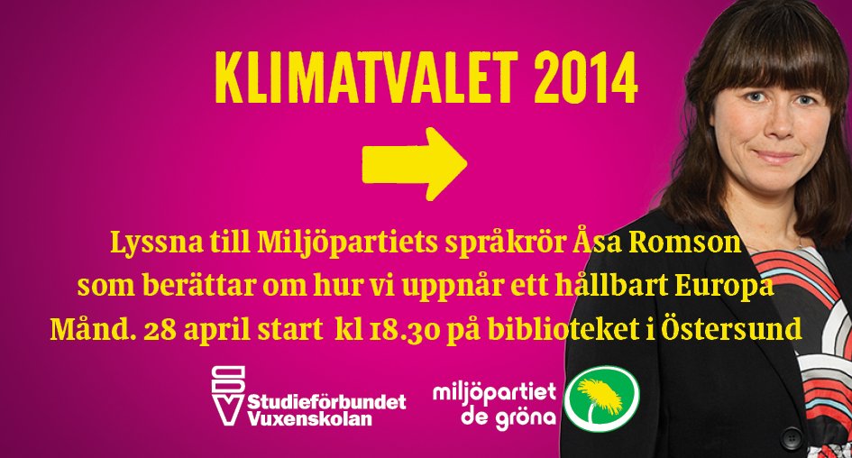 Kom och lyssna till Miljöpartiets språkrör Åsa Romson som berättar hur vi uppnår ett hållbart Sverige och Europa