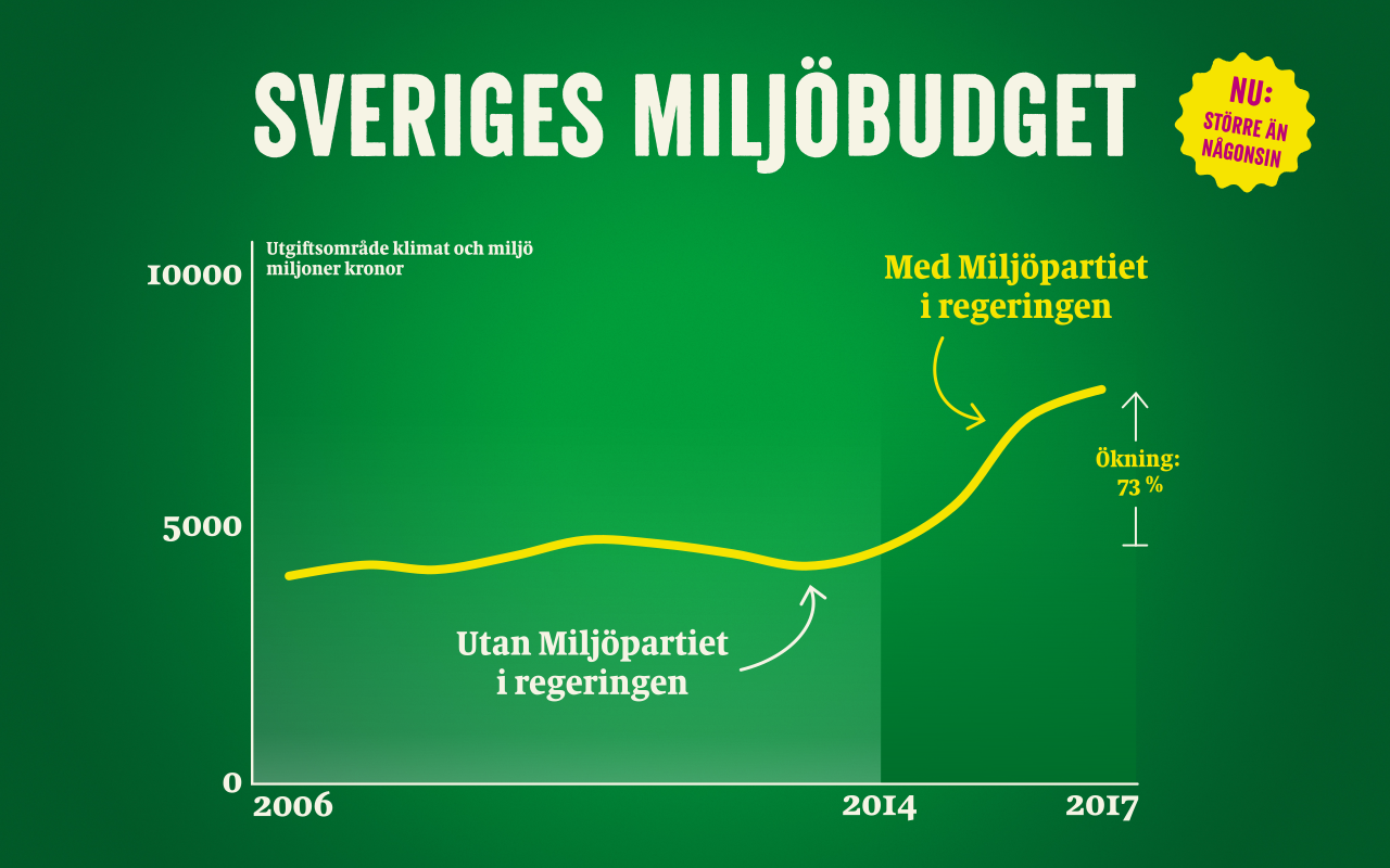Med Miljöpartiet i regering har miljöbudgeten ökat med 73 procent. I budgeten för 2017 gör vi den största satsningen på klimat och miljö någonsin.