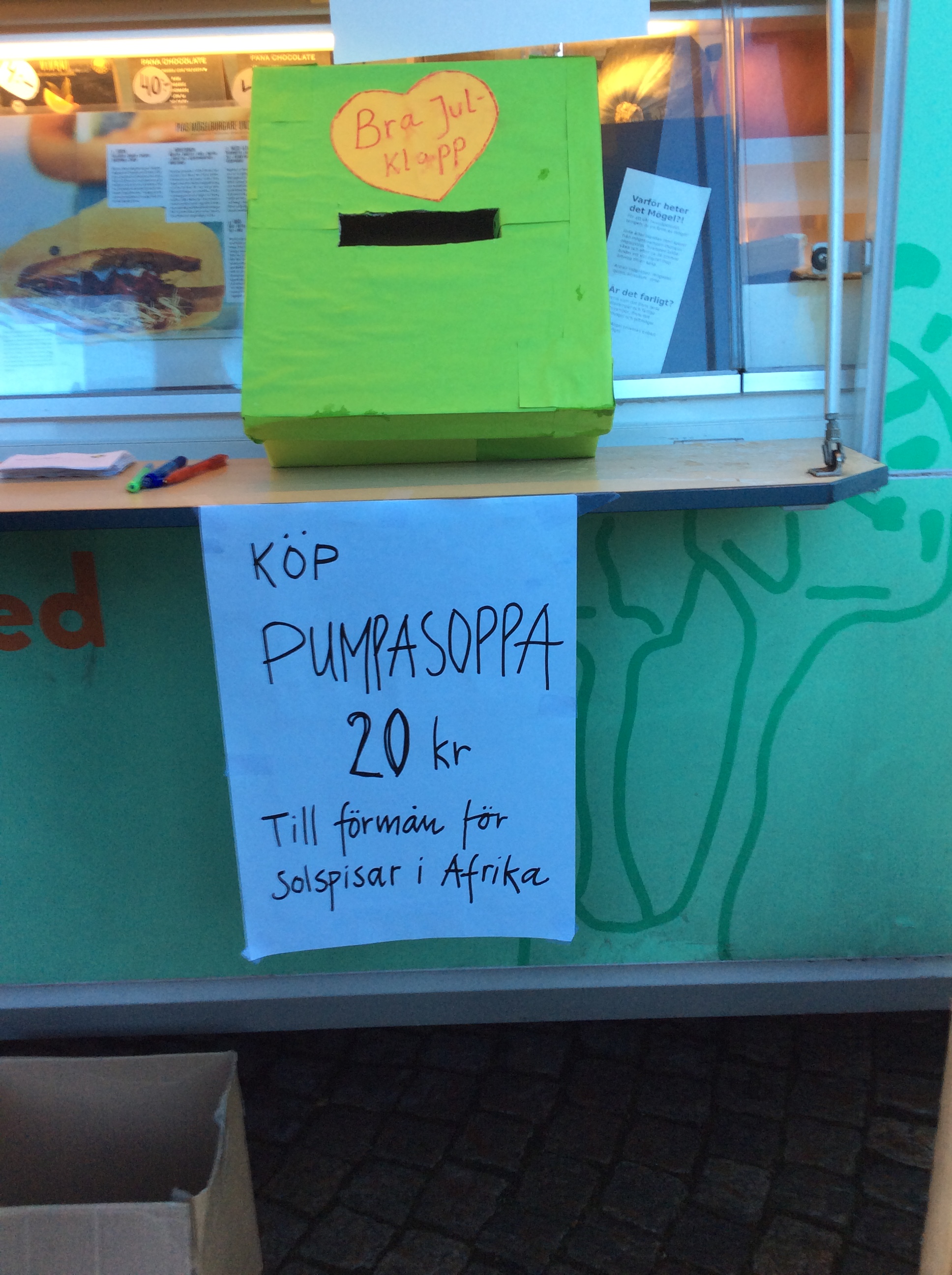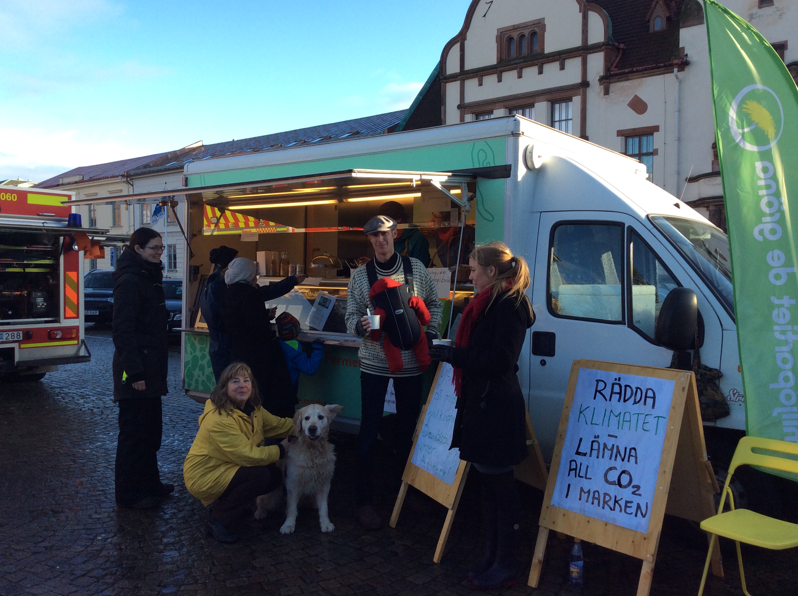 Miljöpartiet i Karlshamn deltog i den globala klimatmanifestationen och visade på klimatsmart mat genom Pia Qvarnströms vegetariska mögelburgare och mamma Unas goda pumpasoppa. Pengarna vi fick in går till en solspis i Afrika.För klimatets skull LÅT OLJERESERVERNA LIGGA KVAR I MARKEN! Låt oss se till att kommunens pensionsplaceringar inte går till kol-och oljeindustrin! Se motion.Många människor deltog i vår tävling om bra förslag på miljövänliga julklappar.Snart koras 3 vinnare.