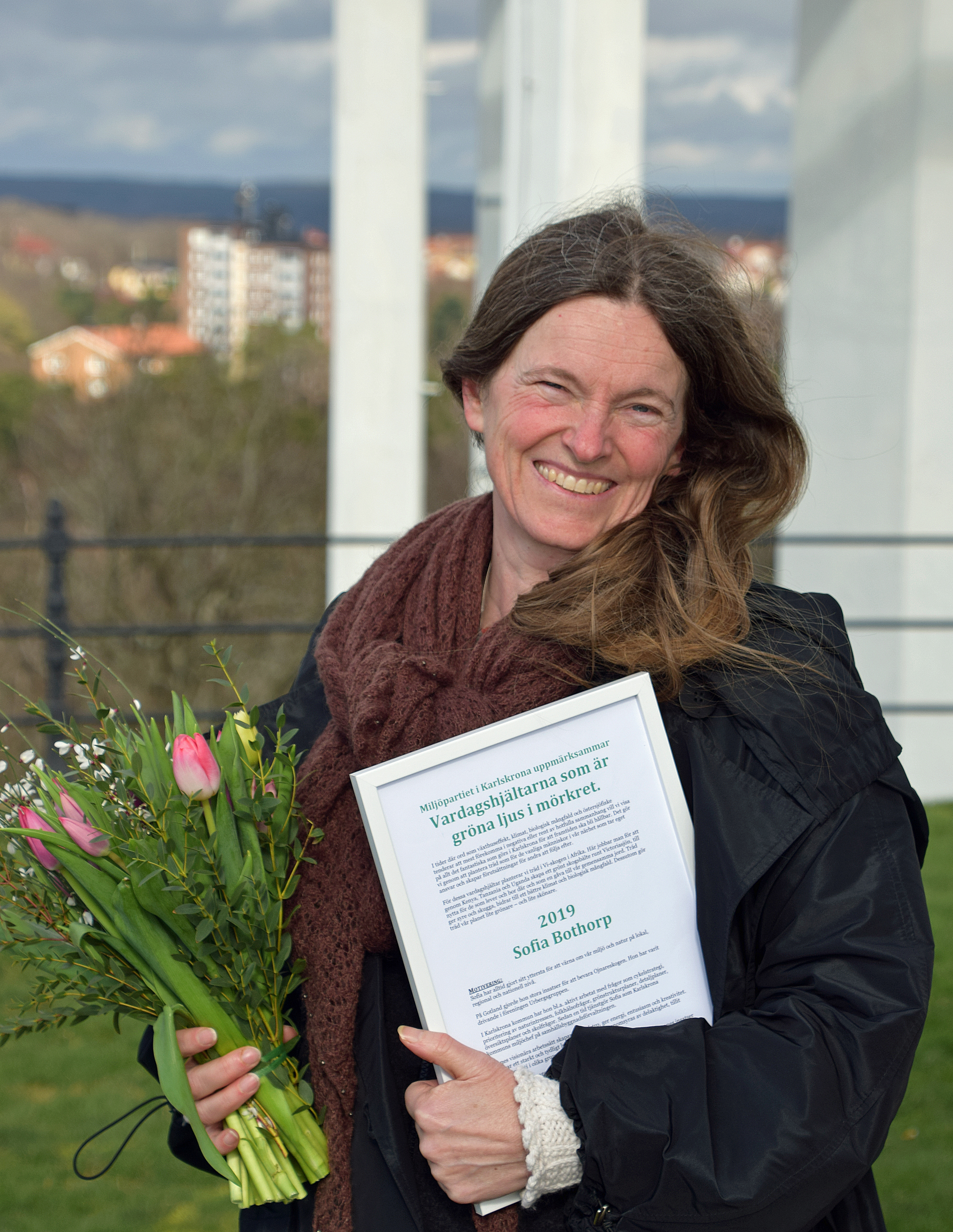 Sofias härliga engagemang, hennes sociala kompetens och vetgirighet och hennes insatser för de gröna hållbara satsningarna är ett utmärkt exempel på en vardagshjälte som Miljöpartiet i Karlskrona vill lyfta fram som en förebild.