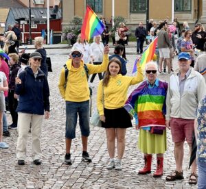 I år startade paraden från Stumholmen igen och följde den vägen den gick tidigare med stopp på Stortorget. Miljöpartiet deltog med fem personer plus ytterligare två när vi kom till Stortorget.