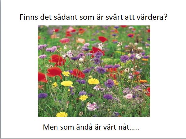 Kan vi budgetera för sådant man inte kan sätta pengar på? Ja, ibland kan man faktiskt det. Man kan tex göra en koldioxidbudget och se om vi tar ansvar för vårt bidrag till den förstärkta växthuseffekten, eller vårt uttag ur de gemensamma tillgångar som vår jord har. I år tog jordens relativa tillgångar slut den 13 augusti. Just nu lånar vi av våra barn och barnbarn. Vi i Sverige skulle behöva 1,7 jordklot för att få ”ekonomi i balans” så att säga. Men vad gör vi då i mål och budget?