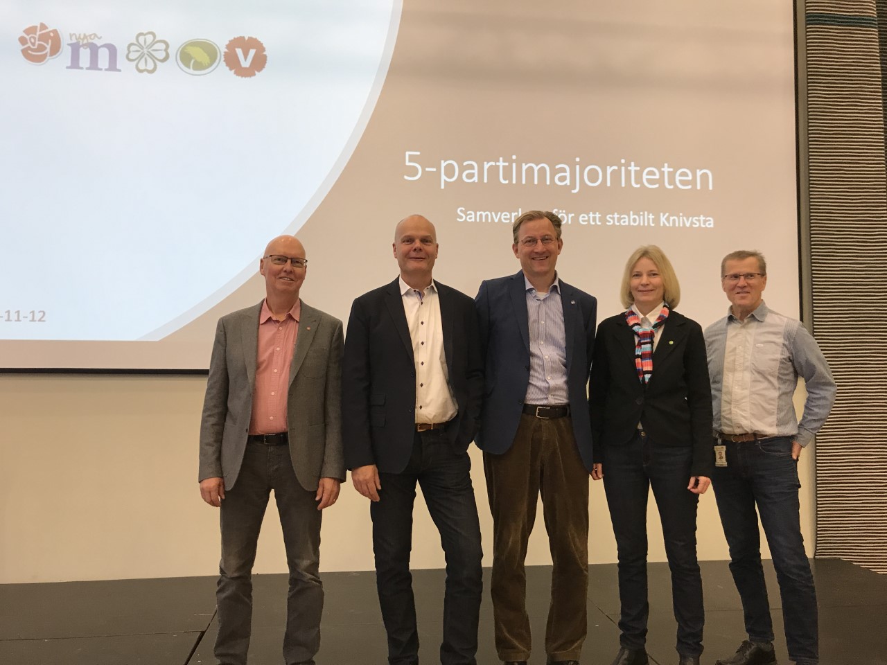 Knivsta kommun har nu en ny majoritet bestående av (S), (C), (V), (M) och (MP).
