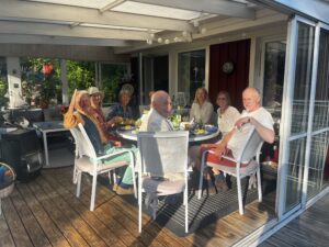 Vi har haft många sommaravslutningar genom åren. Igår träffades vi hemma hos Kerstin för att äta och prata politik. Diskussionerna flöt samtalet om allt från fyrspårsavtalets möjligheter till hur Miljöpartiet internt kommunicerar. Till detta åt vi middag med efterrätt. Vi uppmärksammade också årets jubilar, Germund.