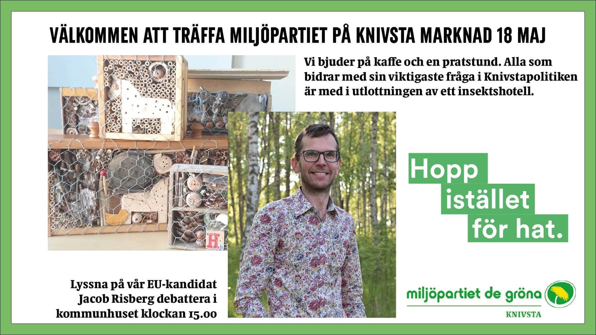 Kl 15 deltar vår egen Jacob Risberg i EU-debatten som hålls i Tilassalen. Innan dess träffar du honom och lokala MP-företrädare vid vårt gröna tält på marknaden.