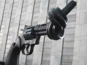 Carl Fredrik Reuterswärds ”Non Violence” finns utanför FN-huset i New York