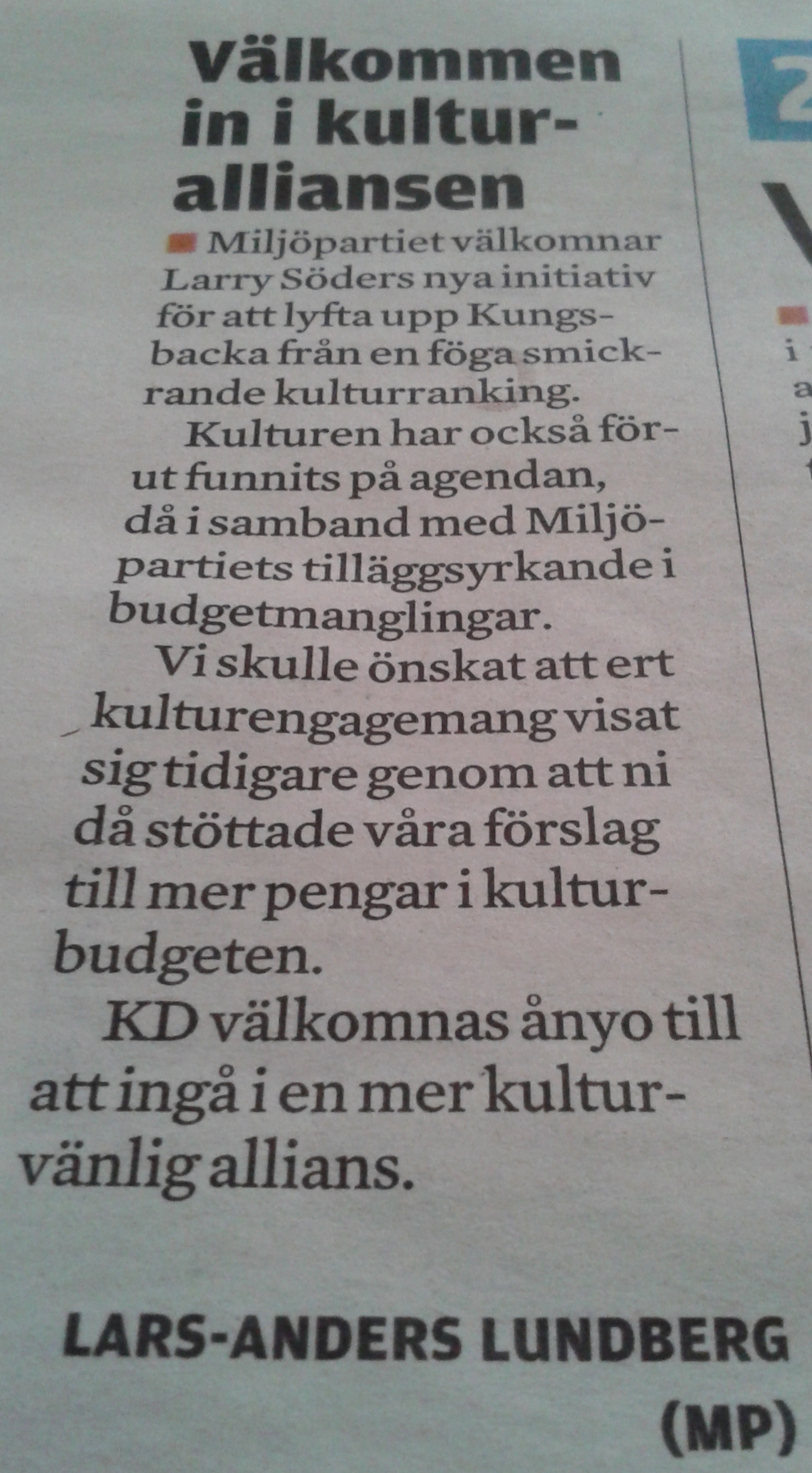 Insändare i Kungsbacka-Posten den 14 januari 2014.