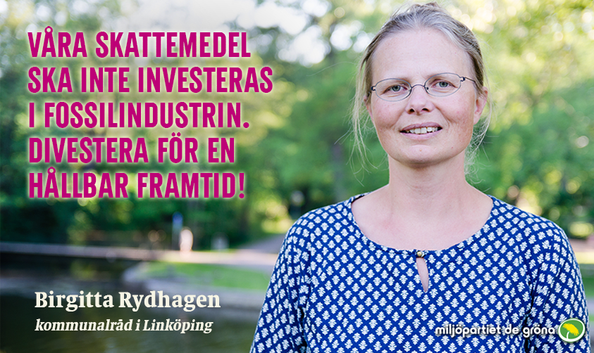 Men vi behöver också se över och ta ansvar för de placeringar vi gör. Effekten av att sälja ”smutsiga” värdepapper är liten i början, men ju fler som tar efter desto svårare blir det för företag som har stor negativ klimatpåverkan. När säljtrycket ökar sjunker värderingarna och investeringar går istället till framtidsinriktade klimatsmarta alternativ. Region Östergötland var första region/landsting i Sverige att börja divestera och därmed göra sig av med placeringar relaterade till kol, olja eller gas. Linköpings kommun har numera en kraftfull policy som utöver divestering pekar på att aktivt göra investeringar i företag som står för hållbara lösningar och tjänster som leder till minskade utsläpp av koldioxid.