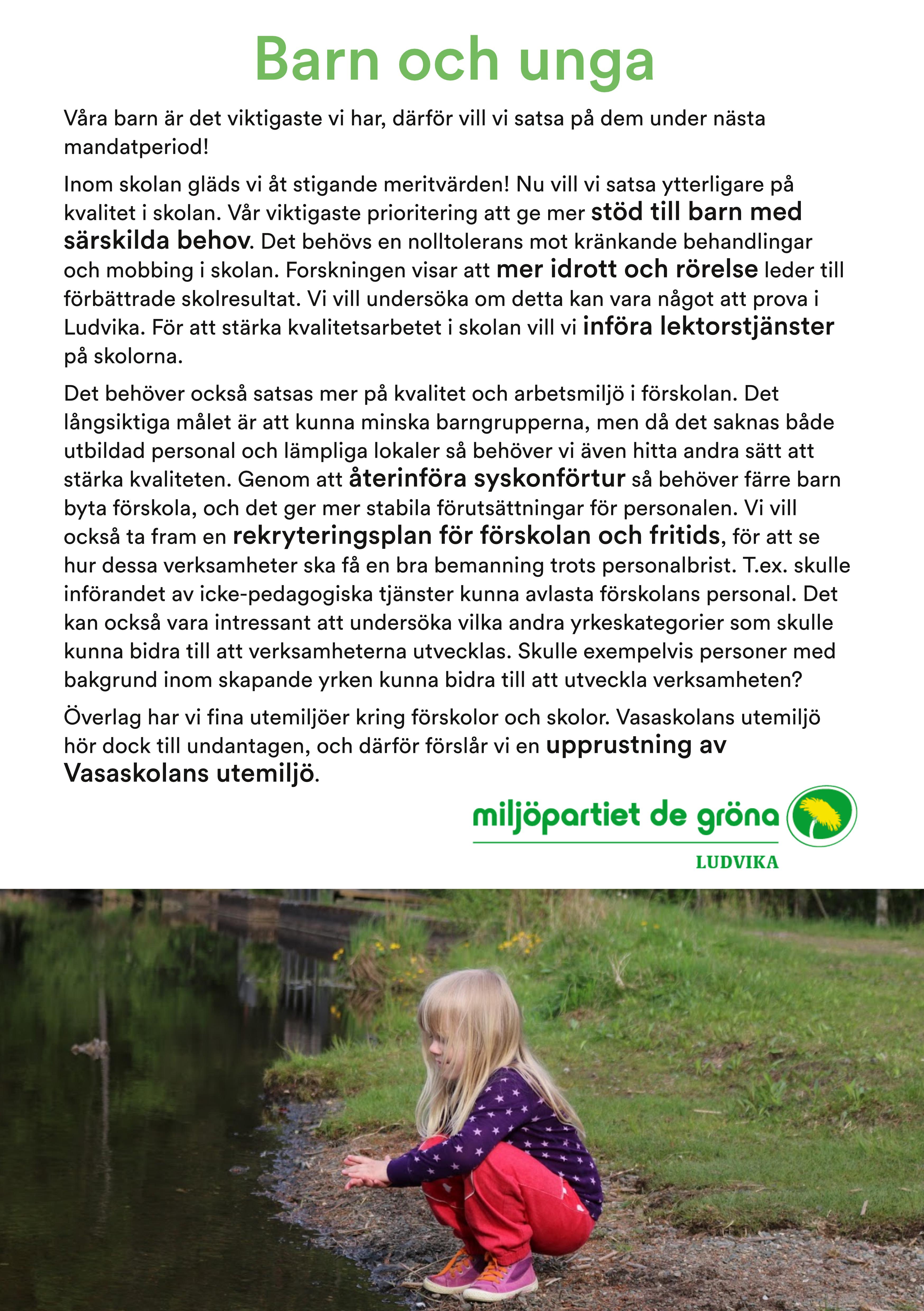 Läs mer om vår politik för barn och unga i vårt infoblad.