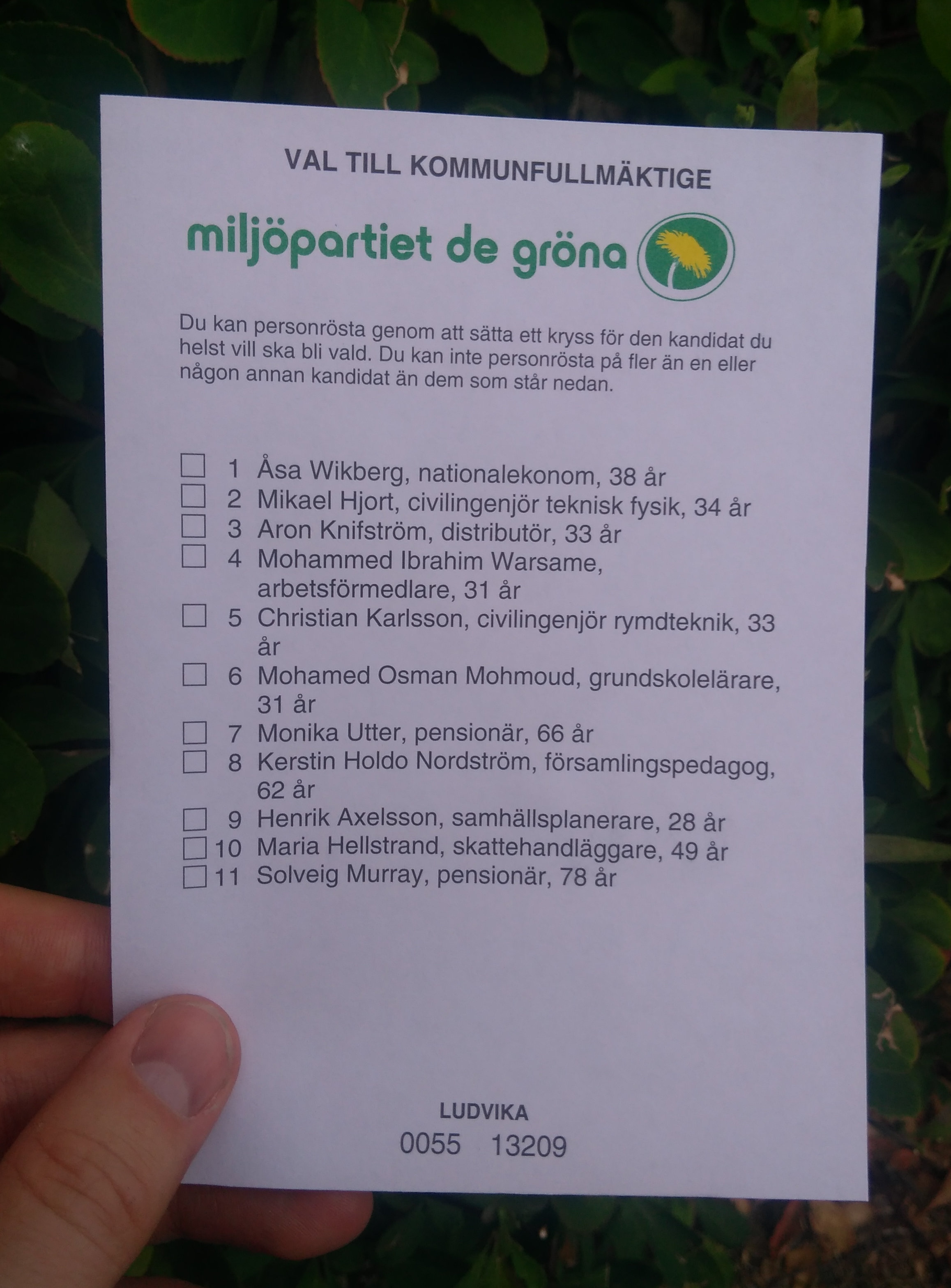Miljöpartiet de gröna i Ludvikas lista till kommunfullmäktigevalet 2018: