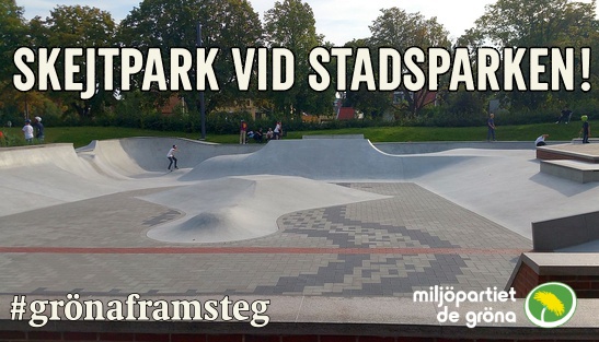 I maj 2016 invigdes en stor skejtpark vid Stadsparken i centrala Lund. Miljöpartiet i Lund har varit pådrivande i projektet från och med dess startpunkt i ett medborgarförslag från en av Lunds många skejtare.