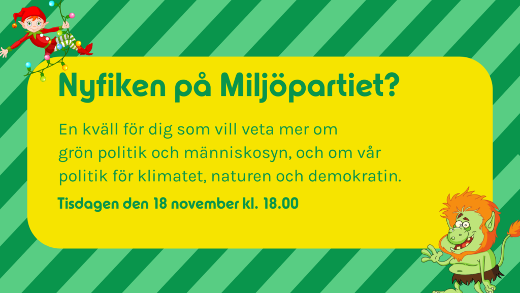 Det här är en kväll för dig som är nyfiken på vad grön politik och människosyn egentligen är och varför det är livsviktigt att dessa röster hörs i det politiska samtalet och de politiska rummen. För dig som vill veta mer om vår politik för klimatet, naturen och demokratin och hur du kan engagera dig.