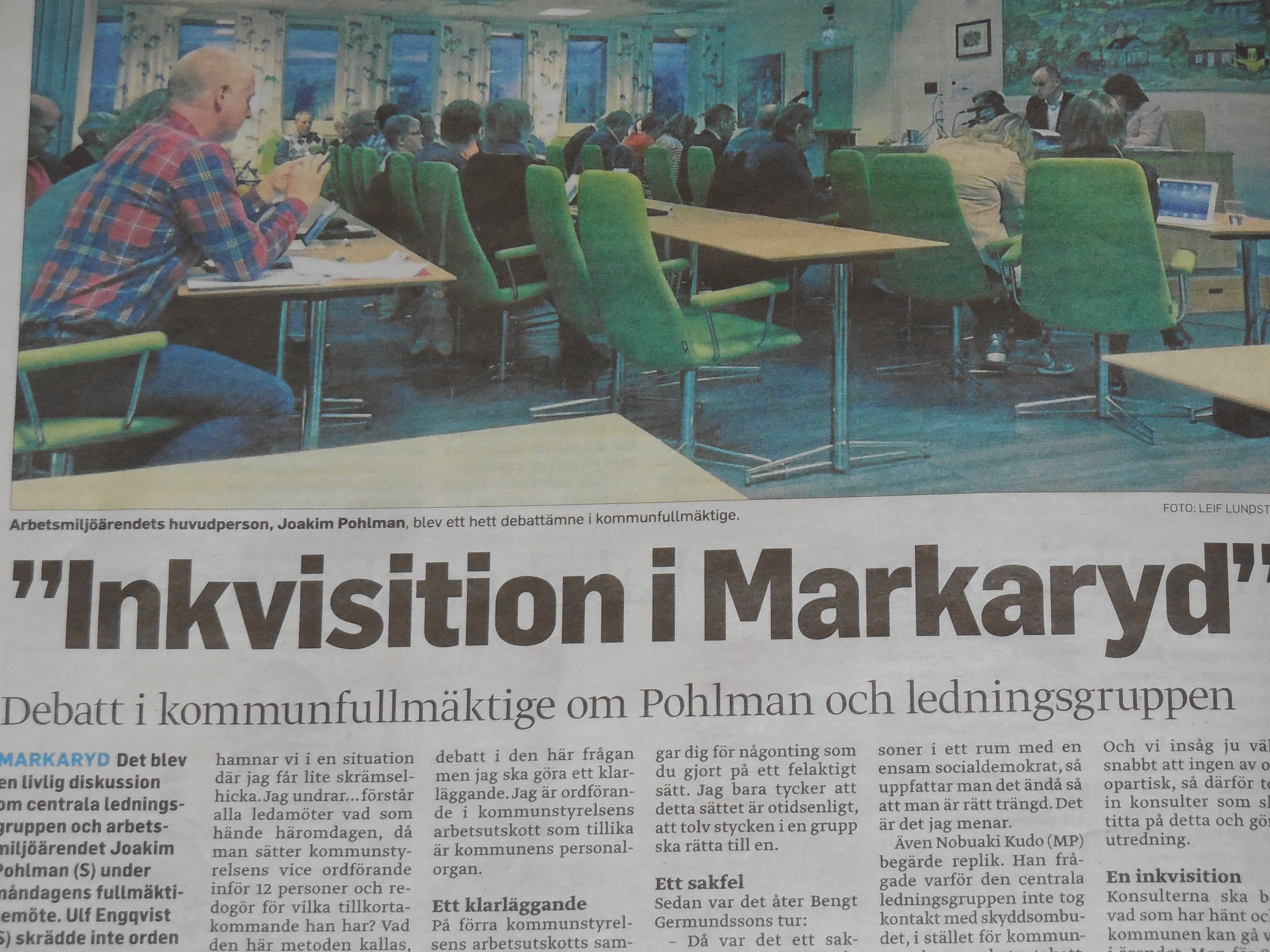 (Noter: MP anser det mest lämpligt uttryck i Markaryds kommun just nu som Smålänningen, Inkvisition i Markaryd efter 14 års KD styrning.)