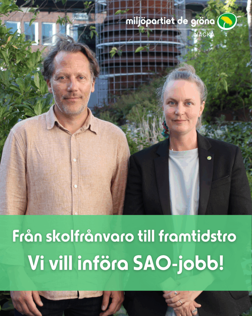 Miljöpartiet vill införa SAO‑jobb i Nacka – ska lyfta skolnärvaro och studiemotivation