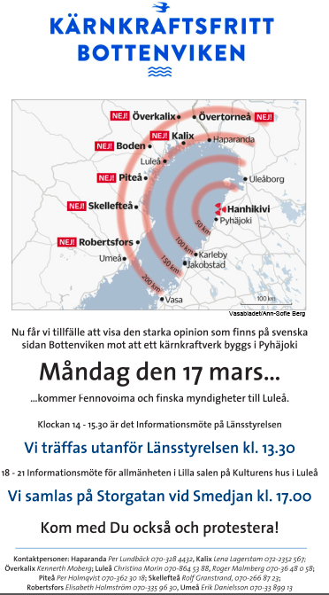 Nu får vi tillfälle att visa den starka opinion som finns på svenska sidan Bottenviken mot att ett kärnkraftsverk byggs i Pyhäjoki!
