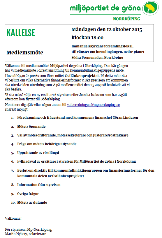 Medlemsmöte och Kommunfullmäktigegrupp