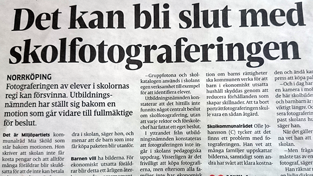 Läs mer i artikeln i Norrköpings Tidningar om oppositionsråd Mia Skölds motion: http://www.nt.se/nyheter/norrkoping/det-kan-bli-slut-med-skolfotografering-10850654.aspx