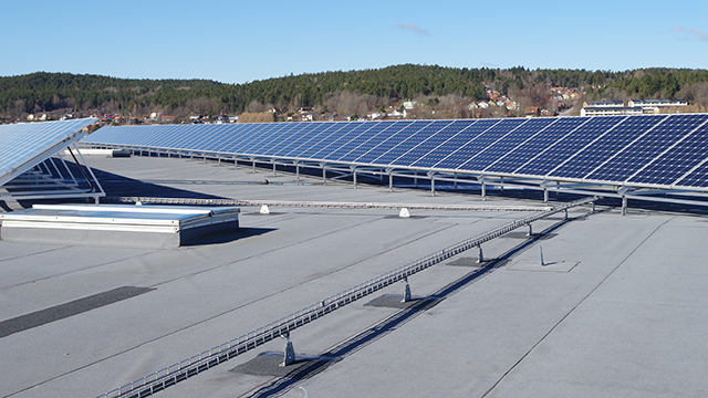 - 40 % av byggnadens elbehov kommer från solcellerna.