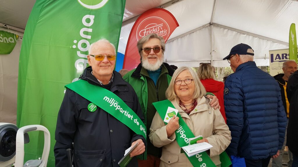 Gröna seniorerna Bengt Annebäck, Magnus Hellström och Vivianne Gunnarsson under Seniordagen den 17 maj i Norrtälje.