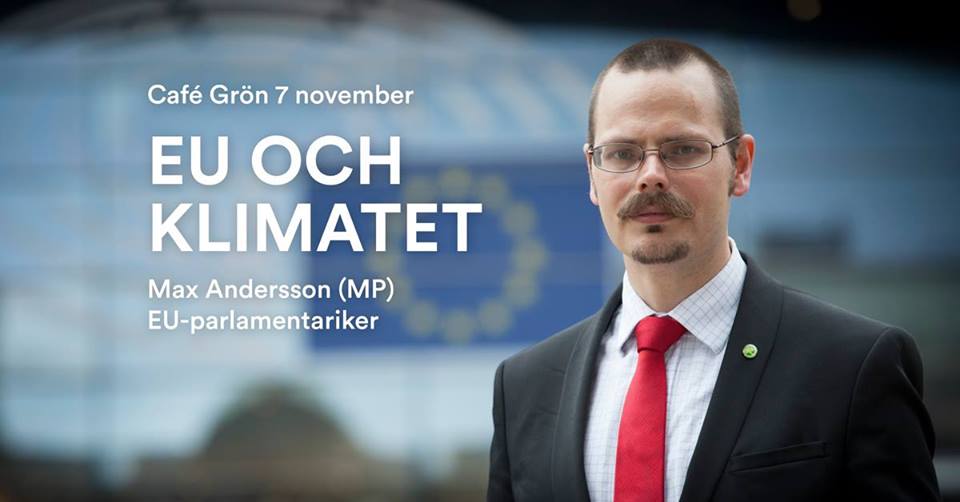 Vi har bjudit in Max Andersson för att prata om EU:s klimatpolitik och Sveriges roll i det internationella klimatarbetet. Max Andersson är en av fyra miljöpartistiska europaparlamentariker. Han är djupt engagerad i handelspolitik, EU-kritik, IT- och integritetspolitiksamt klimatfrågor. Vi bjuder på fika. Välkommen!