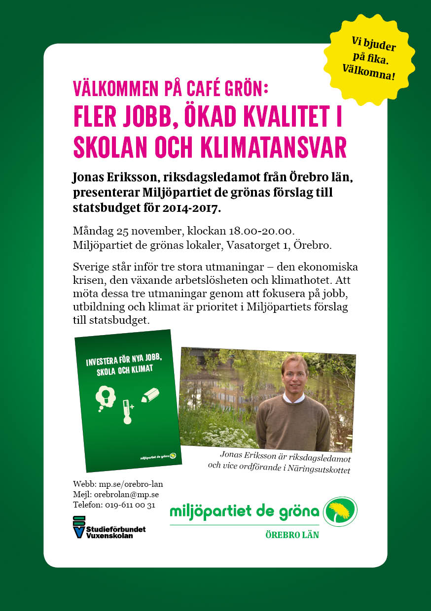 Café Grön – fler jobb, ökad kvalitet i skolan och klimatansvar