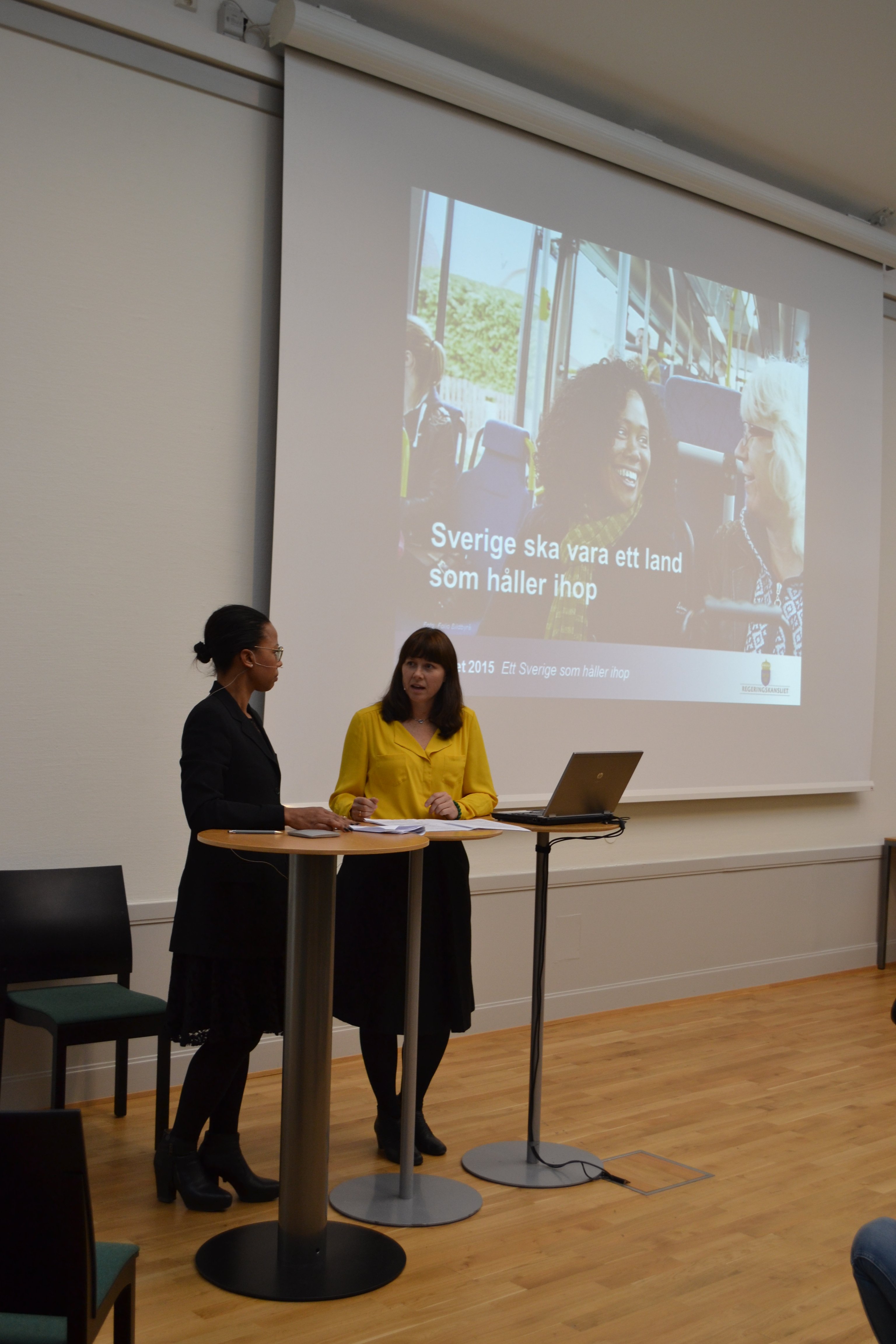 Åsa Romson, klimat- och miljöminister och vice statsminister, och Alice Bah Kuhnke, kultur- och demokratiminister, presenterade regeringens budgetproposition för 2015 vid en pressträff på Länsmuseet i Örebro tidigare idag.