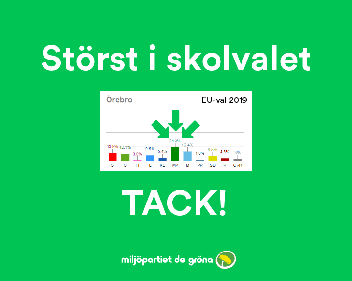 Var fjärde elev i Örebro röstade grönt i EU-skolvalet 2019. I kommunen blev Miljöpartiet tredje största parti.