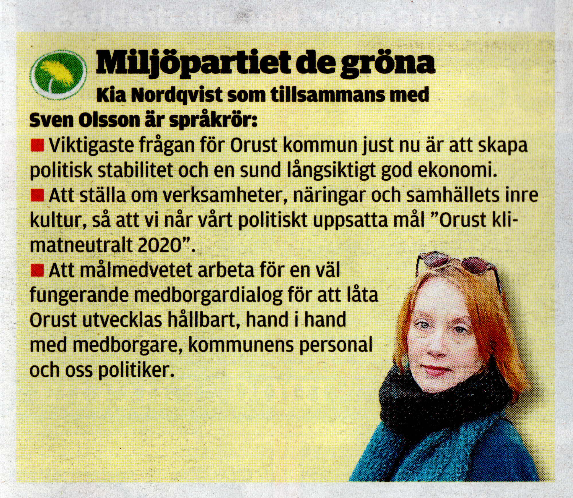 Kia Nordqvist, språkrör MP-Orust, svarar om de tre viktigaste frågorna just nu inför valet.