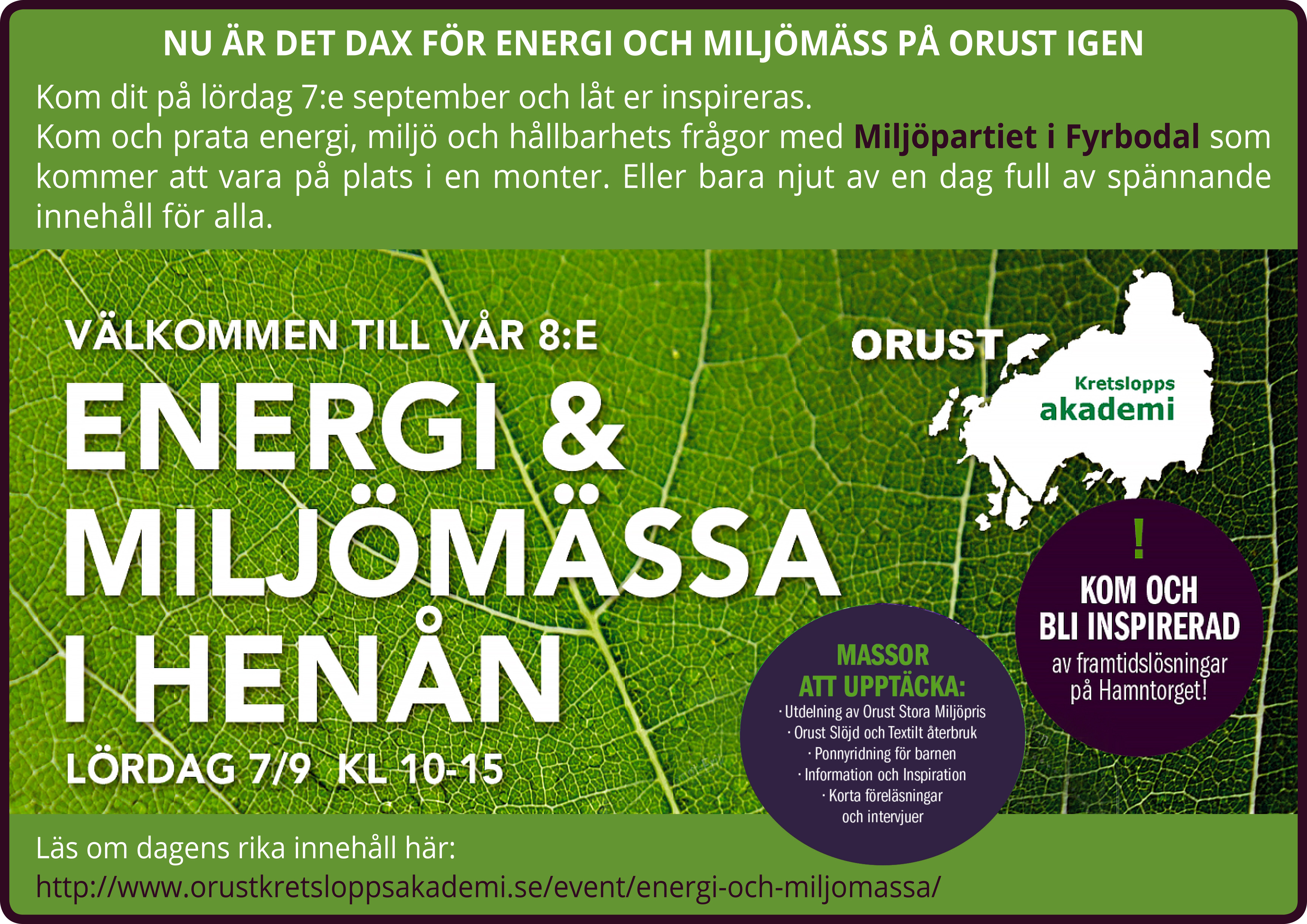 ENERGI & MILJÖMÄSSA i Henån 7:e sept.