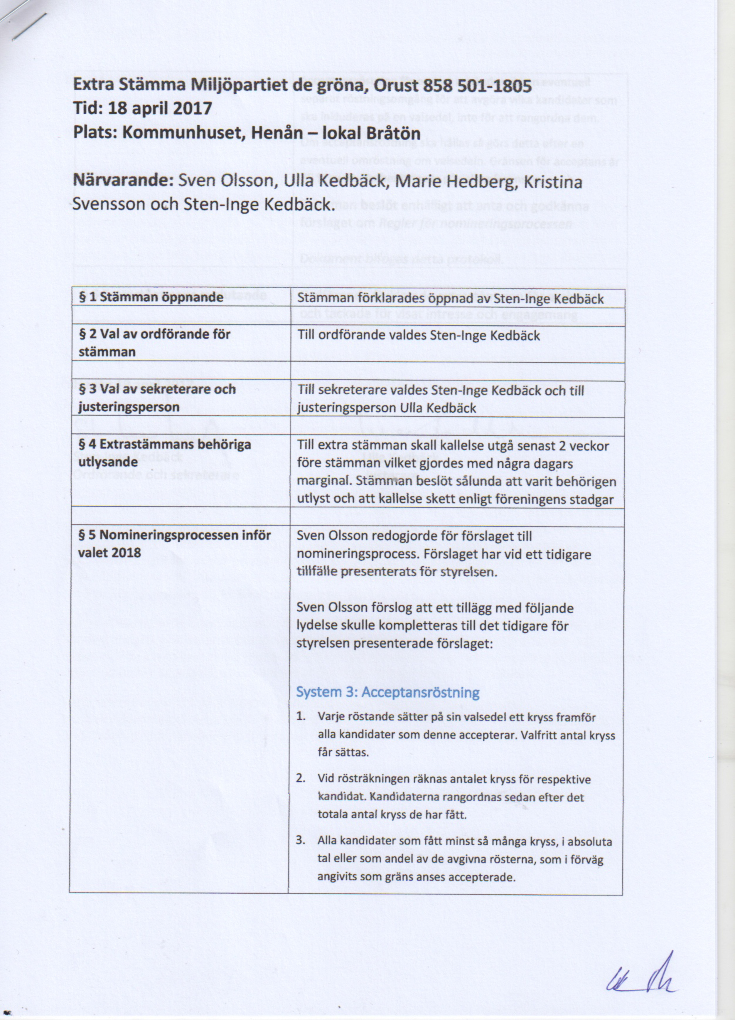 För att säkerställa att vi i Mp Orust kan ha den nomineringsprocess vi önskar hölls ett extra årsmöte 18:e april.