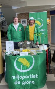 Idag den 3 mars hade Miljöpartiet de gröna i Säffle informationsbord på Herrgårdsgymnasiet. Henrik och Lars var där och diskuterade politik med ungdomar och personer som går på SFI med mera. Många var framme och diskuterade olika frågor. Godiset tog slut och även våra vindsnurror. Tack för att vi fick komma på besökt.